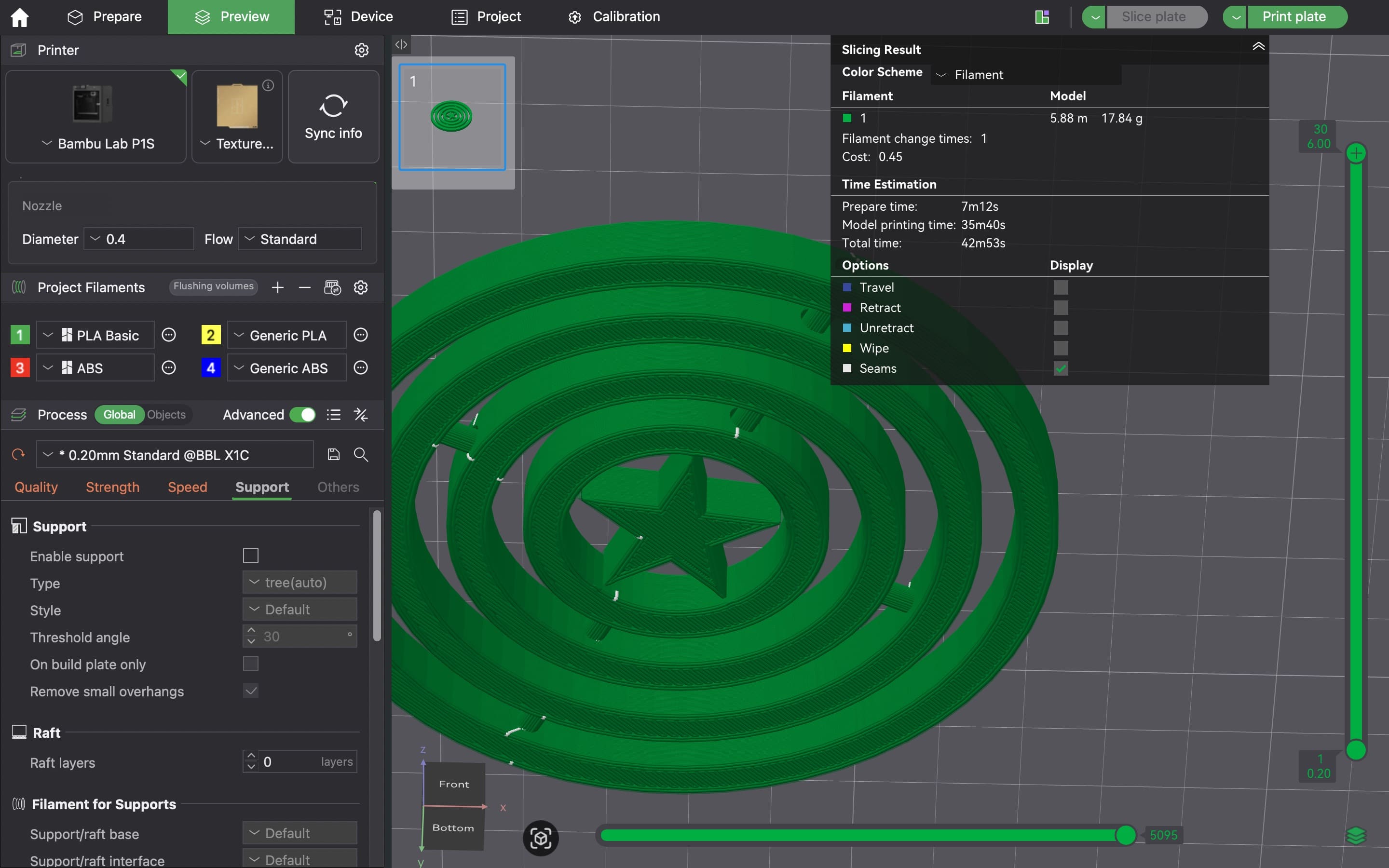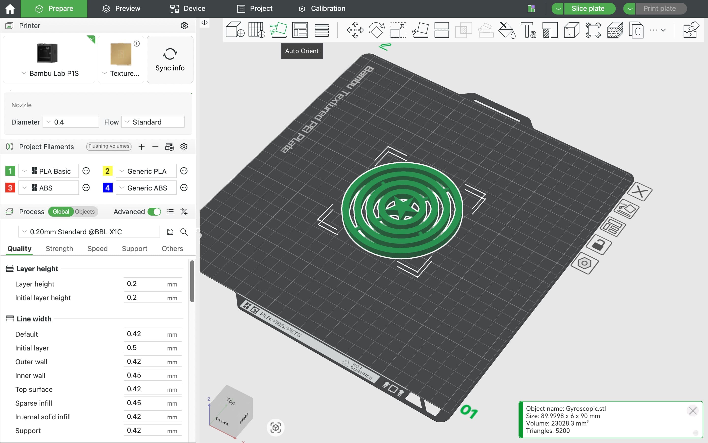 A 0.20 mm layer height was selected as a balance between print time and dimensional accuracy, particularly important for the rotational clearances between rings.