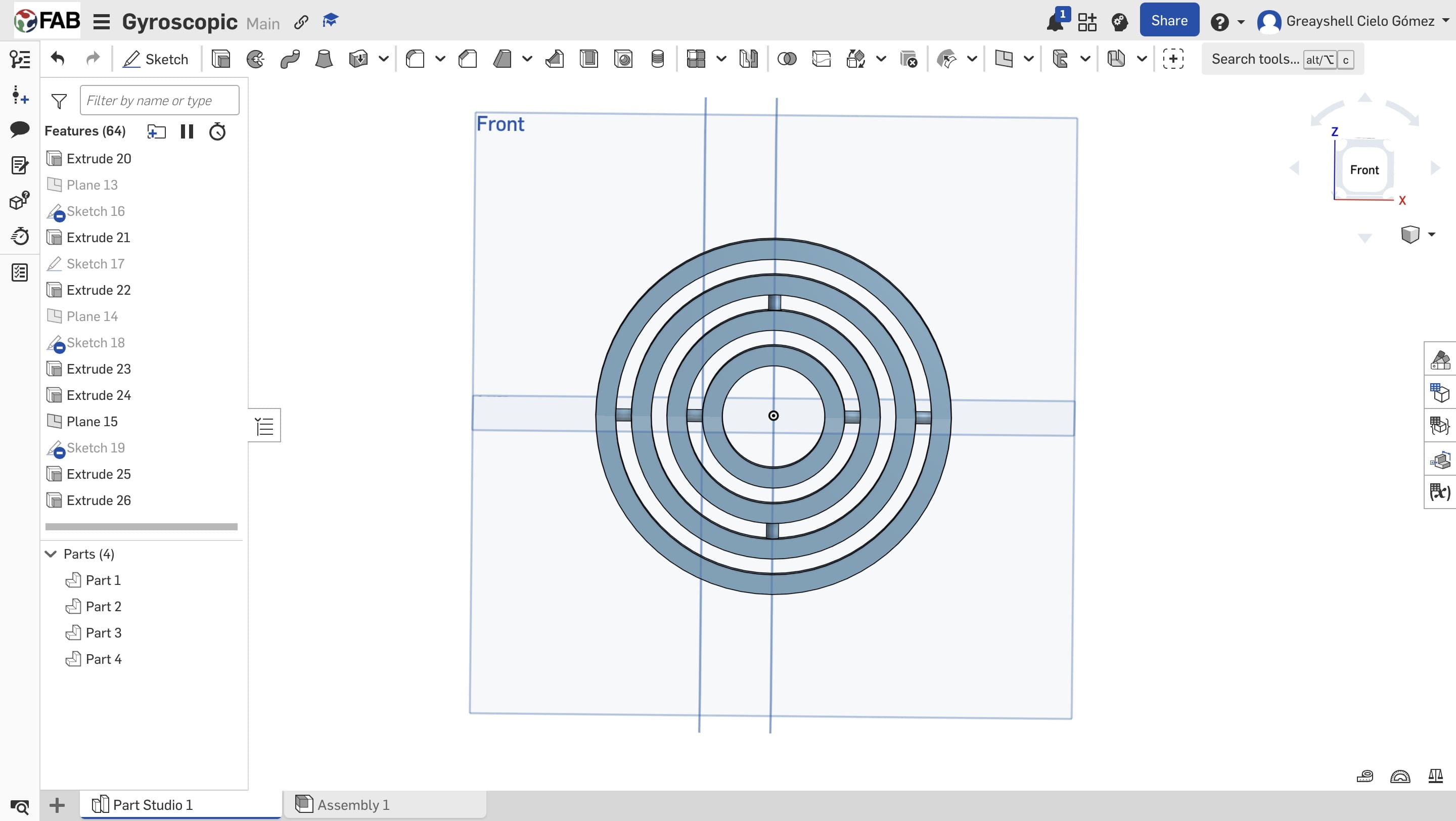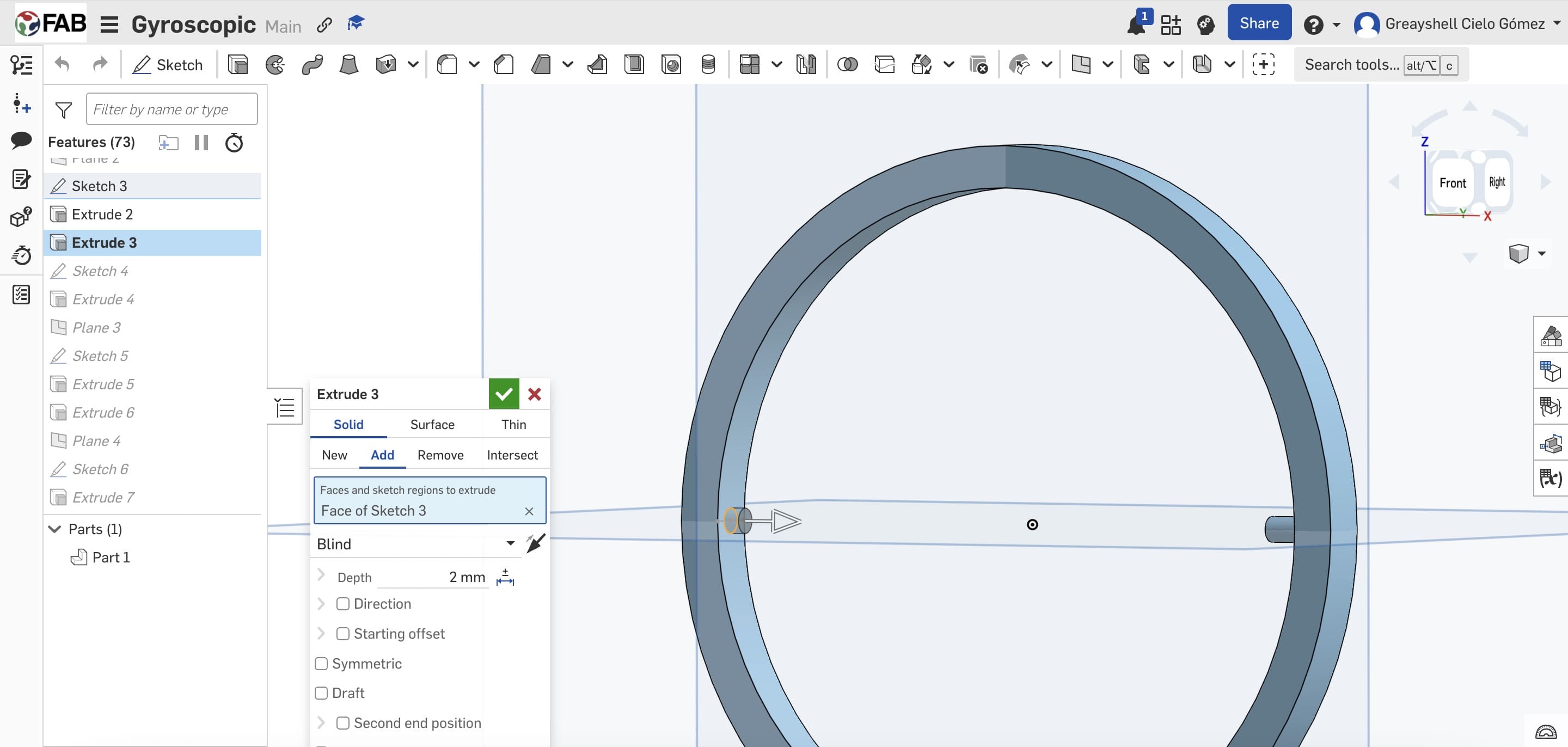 For the modeling process I used Onshape, and I began by sketching and extruding a circle to define the outer ring. To encapsulate one ring within another, a male-female interlocking system was implemented.