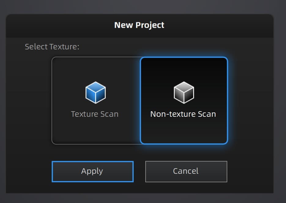 Once I had the software downloaded on my computer, I created a new project and selected Non-texture Scan. This model prioritizes shape accuracy and generates a mesh based on the projection.