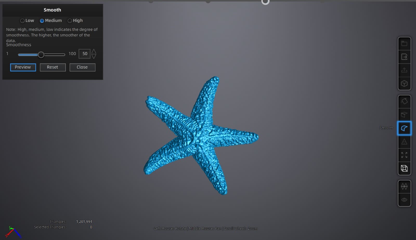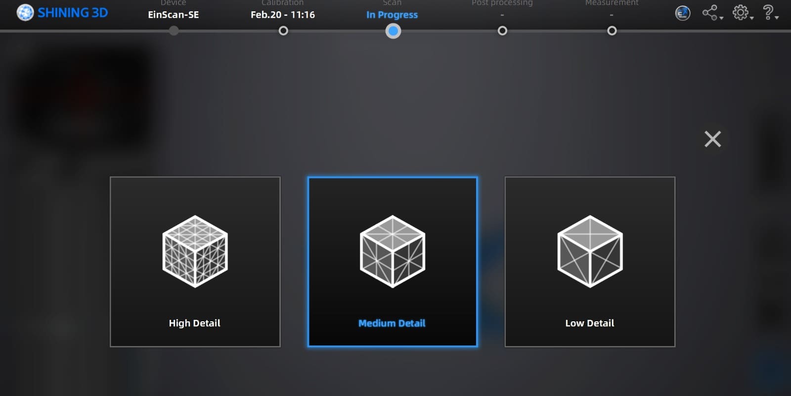 When the scan cycle was completed, I mesh my figure to optimize the model and selected a Medium Detail for it.