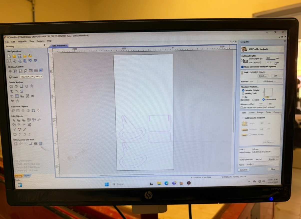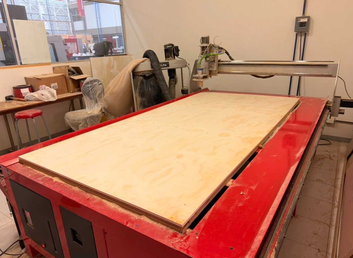 In week 7, the focus was on large-scale digital fabrication using the CNC router (Computer Numerical Control router). Unlike smaller digital fabrication tools such as laser cutter or vinyl cutter, the CNC router allows the fabrication of large structural objects from sheet materials like plywood or MDF of greater thickness.