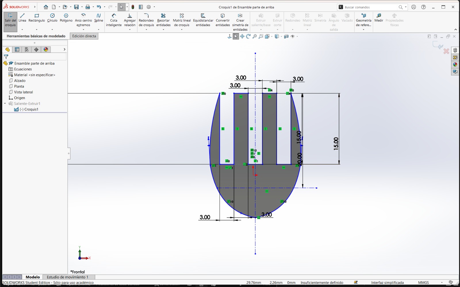 - The design was extruded using the thickness of the material. Finally, in an assembly document, the parts were placed and assembled to obtain a visual representation of the final result.