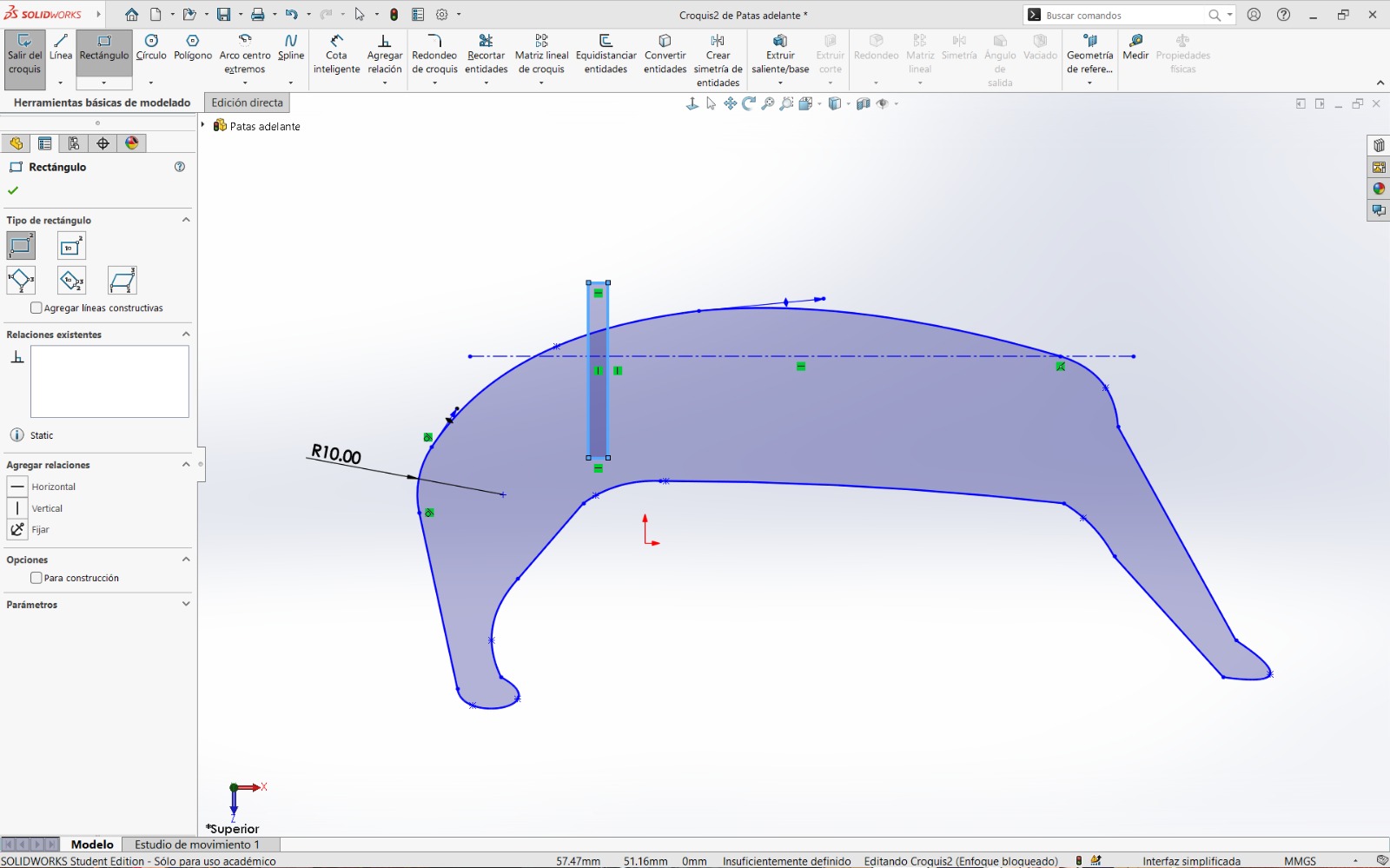 - Since I wanted to create a press-fit joint assembly, rectangles were drawn and excess lines were removed.