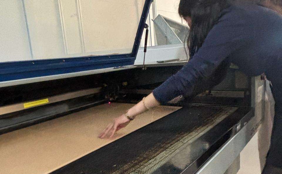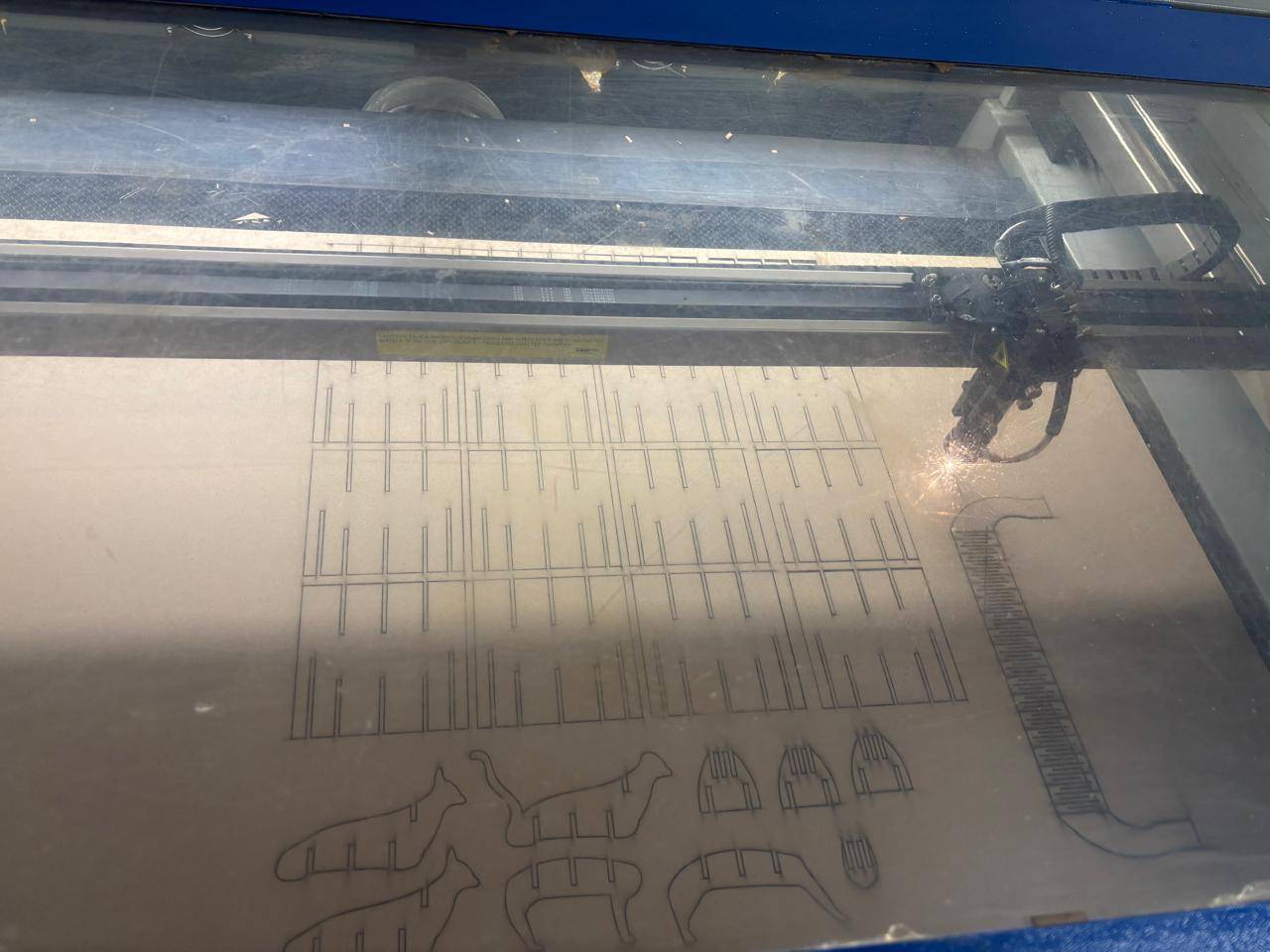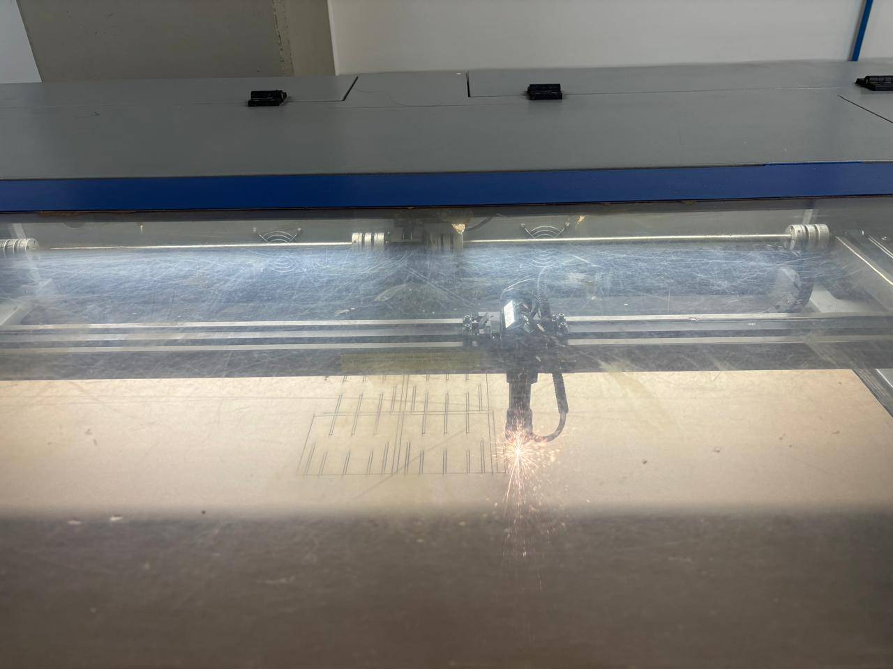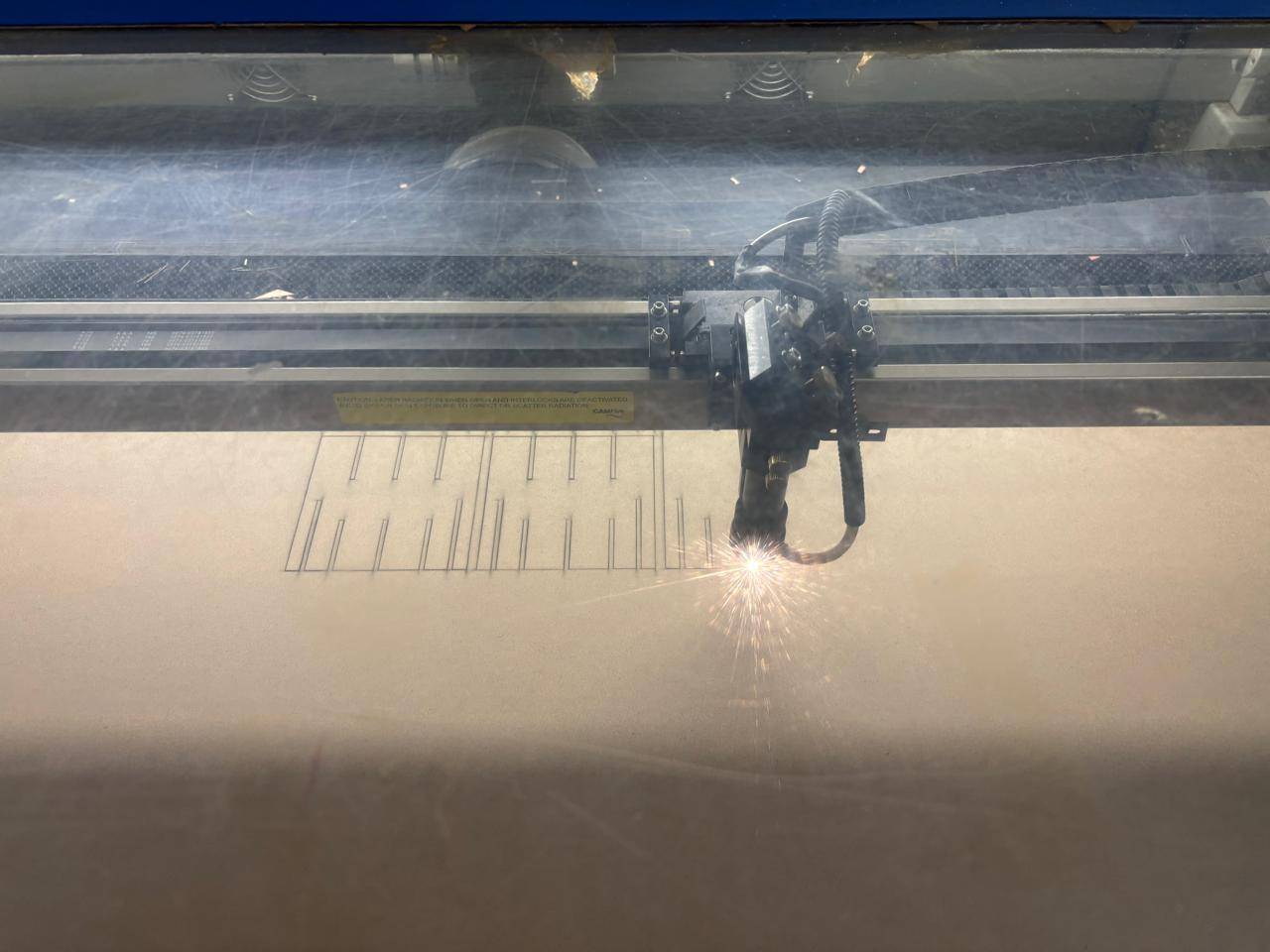 Finally, I increased the laser power and pressed the button to activate the laser beam, initiating the cutting process.