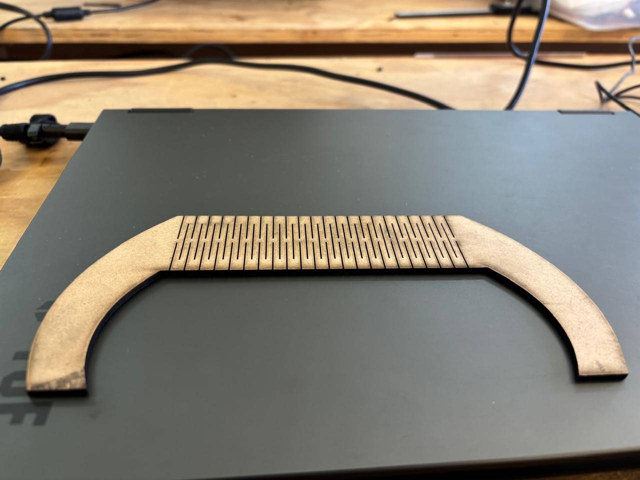 - To design the living hinge, my instructor provided this template, which served as a reference. Modifications were made using the predefined equations. Specifically, I modified the first three ranges to define the material thickness, kerf value, and the desired bending angle. The rest of the design was completed afterward.