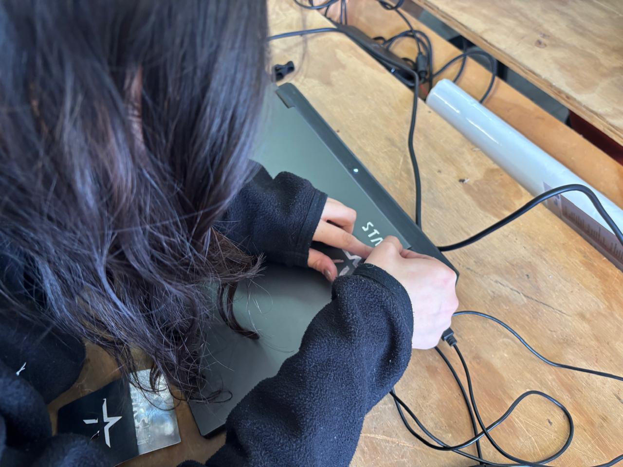 After completing this step, I closed the laser cutter door and inserted the USB drive containing the cutting software, as well as my own USB drive with the DXF files. Within the program, I opened my files and adjusted them according to the desired outcome.