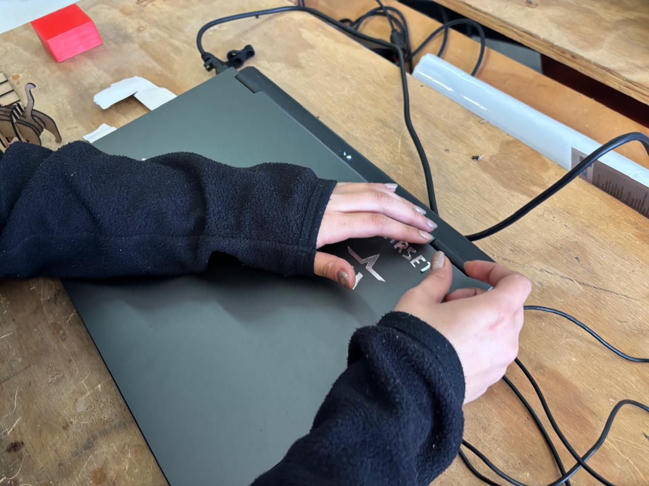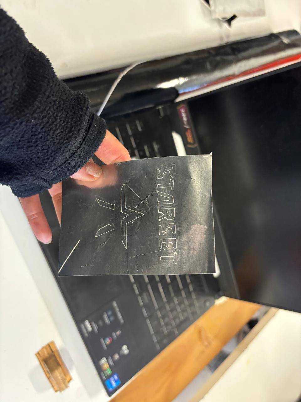10. Once cutting was completed, the vinyl was removed, the excess material was peeled away, and the design was applied to my computer.