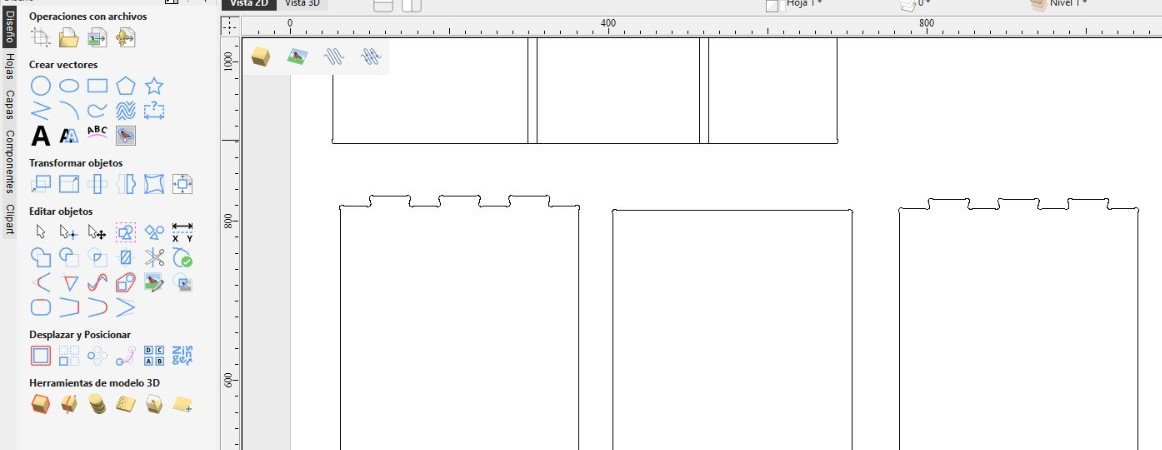 The steps I followed to complete the furniture design were very simple. Thanks to the previous weeks of practice, it was much easier for me to create a design that included joints such as slot joints and press-fit joints. In this way, I obtained the following design.
