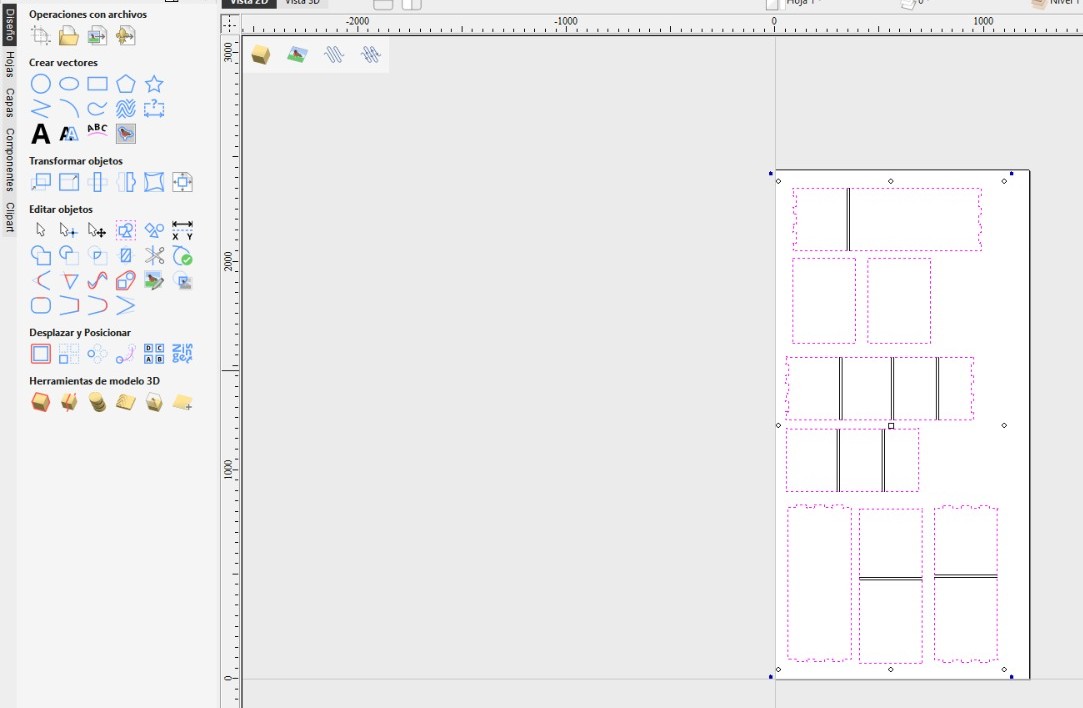 Finally, I created the technical drawings of all the pieces in a single file, which was saved in DXF format.