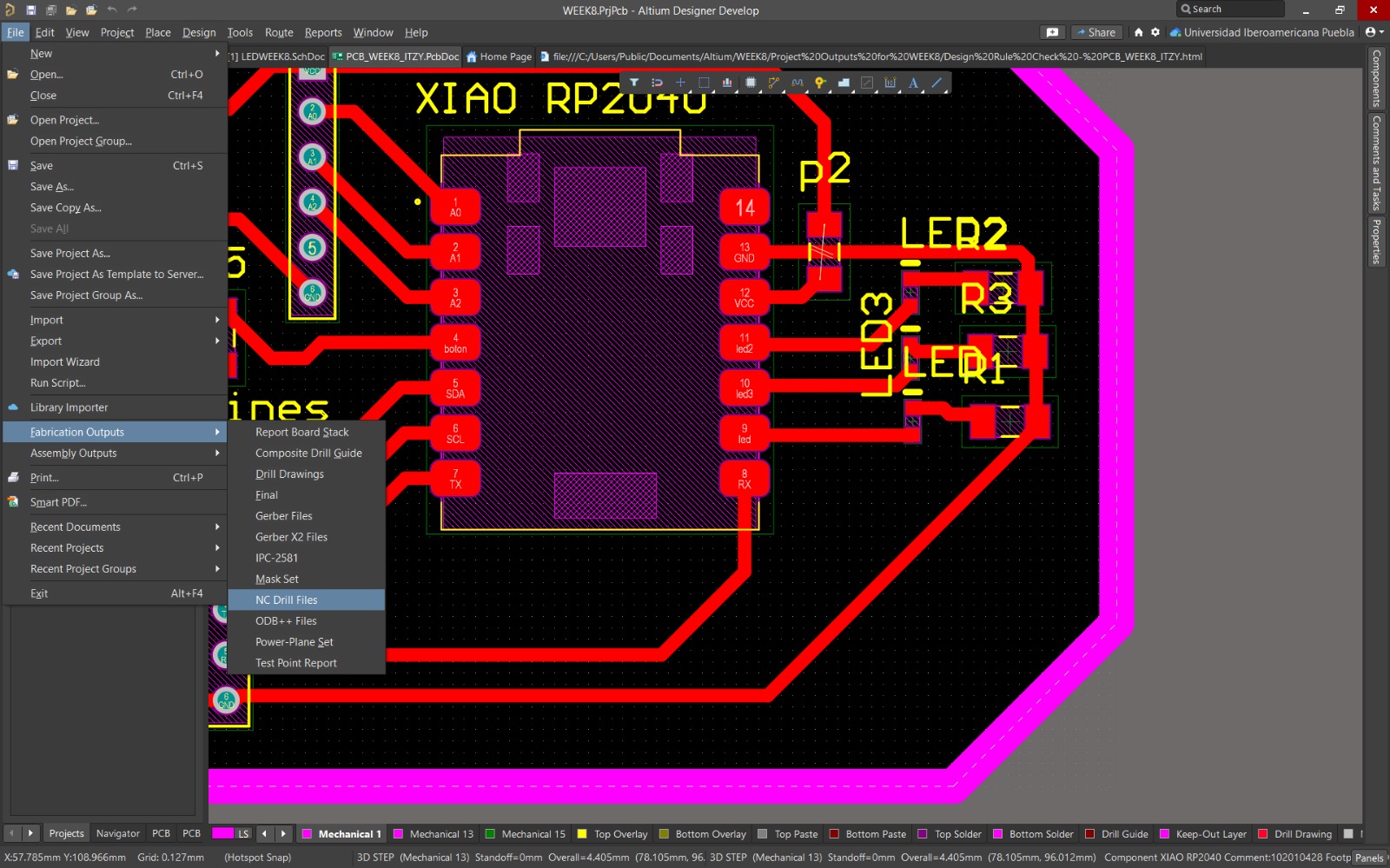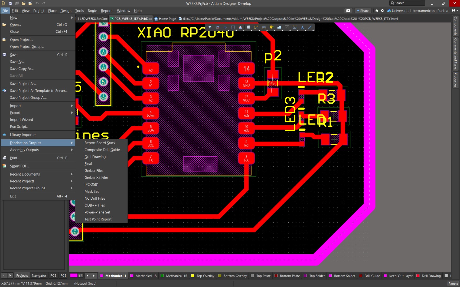 It is necessary to understand the operation of the design of an electronic system, since this is basically the brain of many projects. For me, it was important to learn and manufacture a PCB board, since acquiring this knowledge is enriching. PCB boards are extremely necessary for current technologies. Therefore, without a doubt, this week allowed me to learn how to manufacture boards and not only stay at their design, since these are skills that I will apply in the future for the construction of my final project.