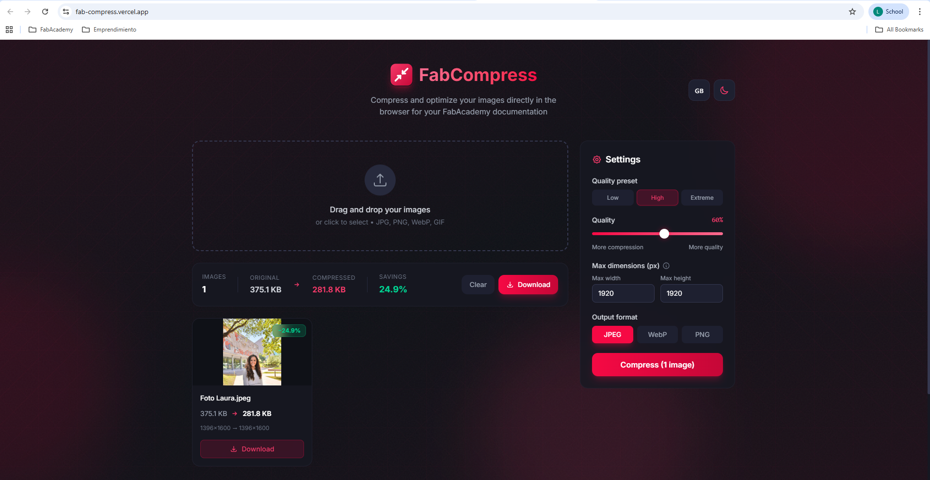 For my image compression, I mostly just send the pictures to myself on whatsapp :D Or I use the following page, shared by our local instructors:
