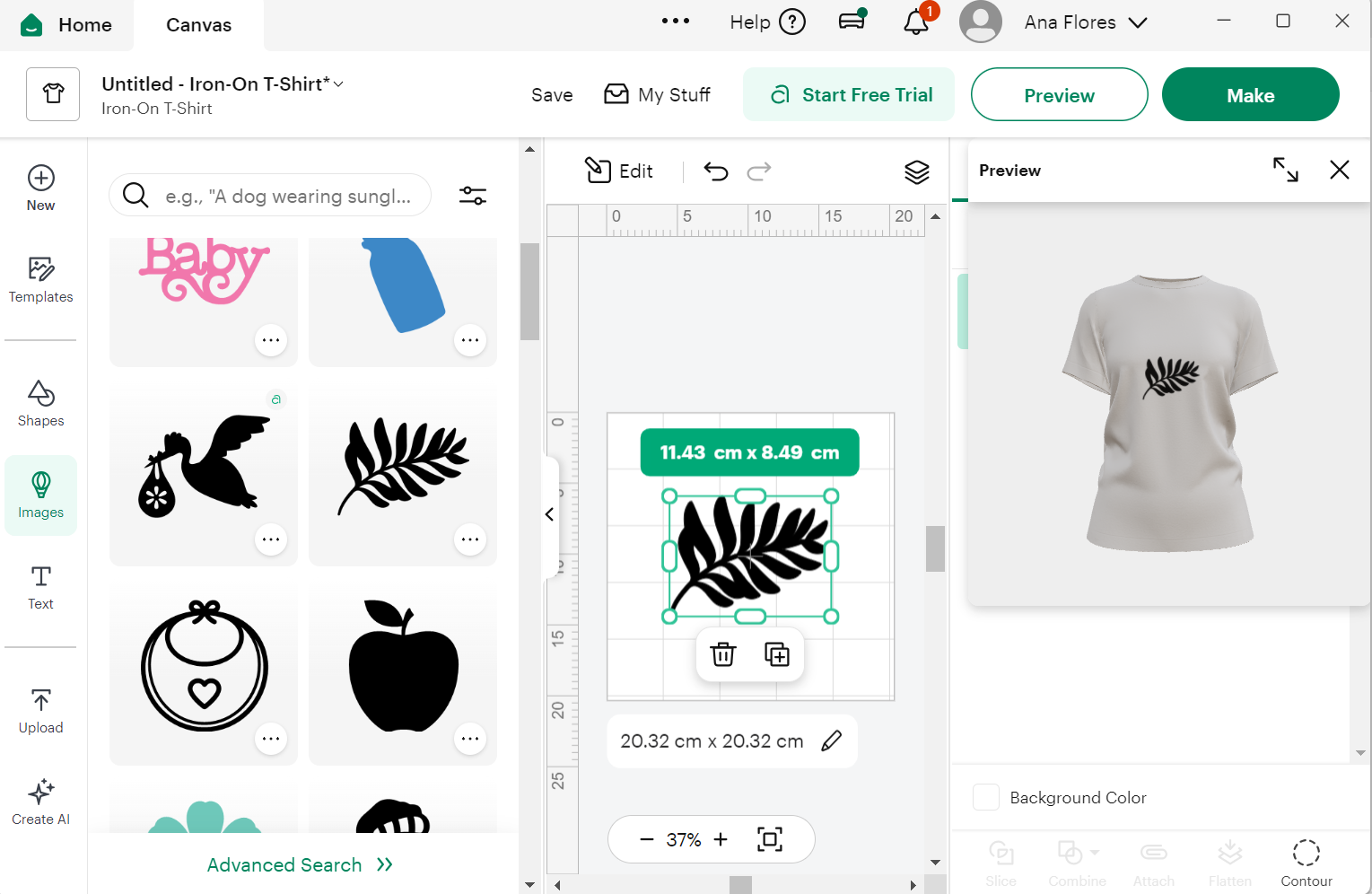 I got some fabric vinil so we selected a shirt preview and looked for cool designs.