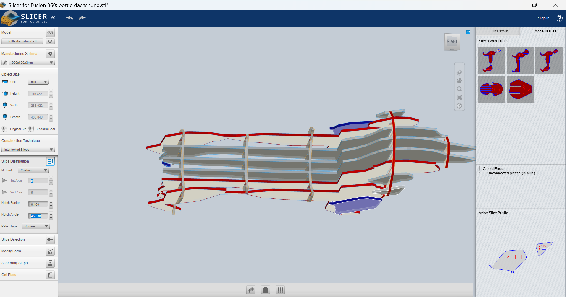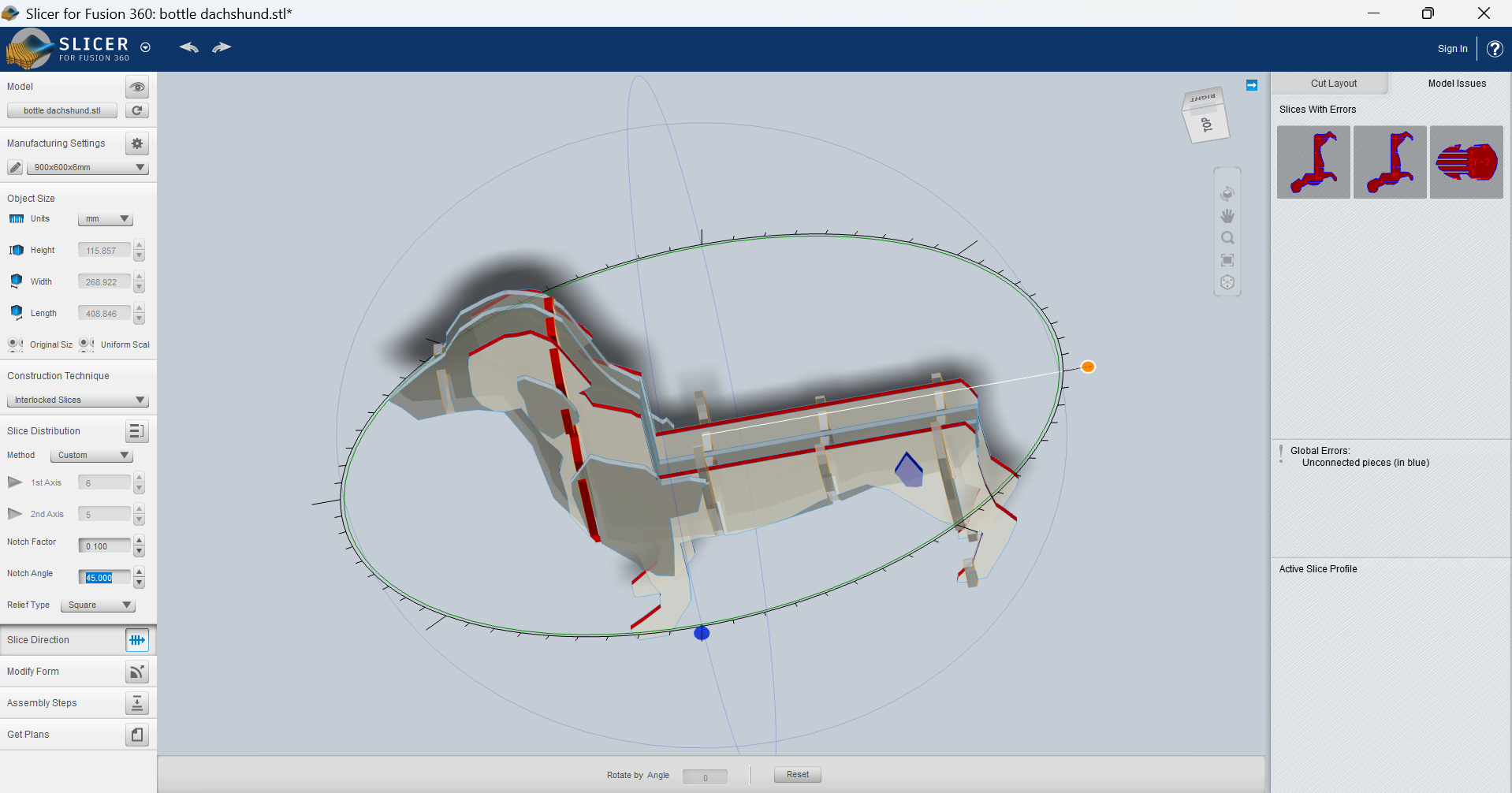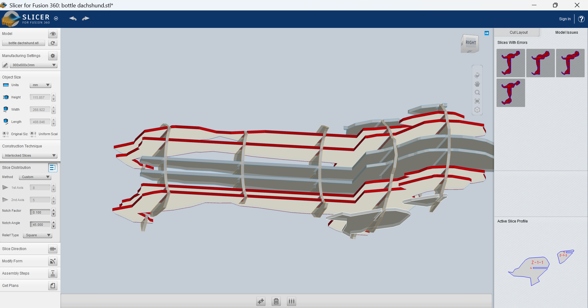 Some weeks later I came back and tried again with the original idea: slicing my 3D model. This time I used the