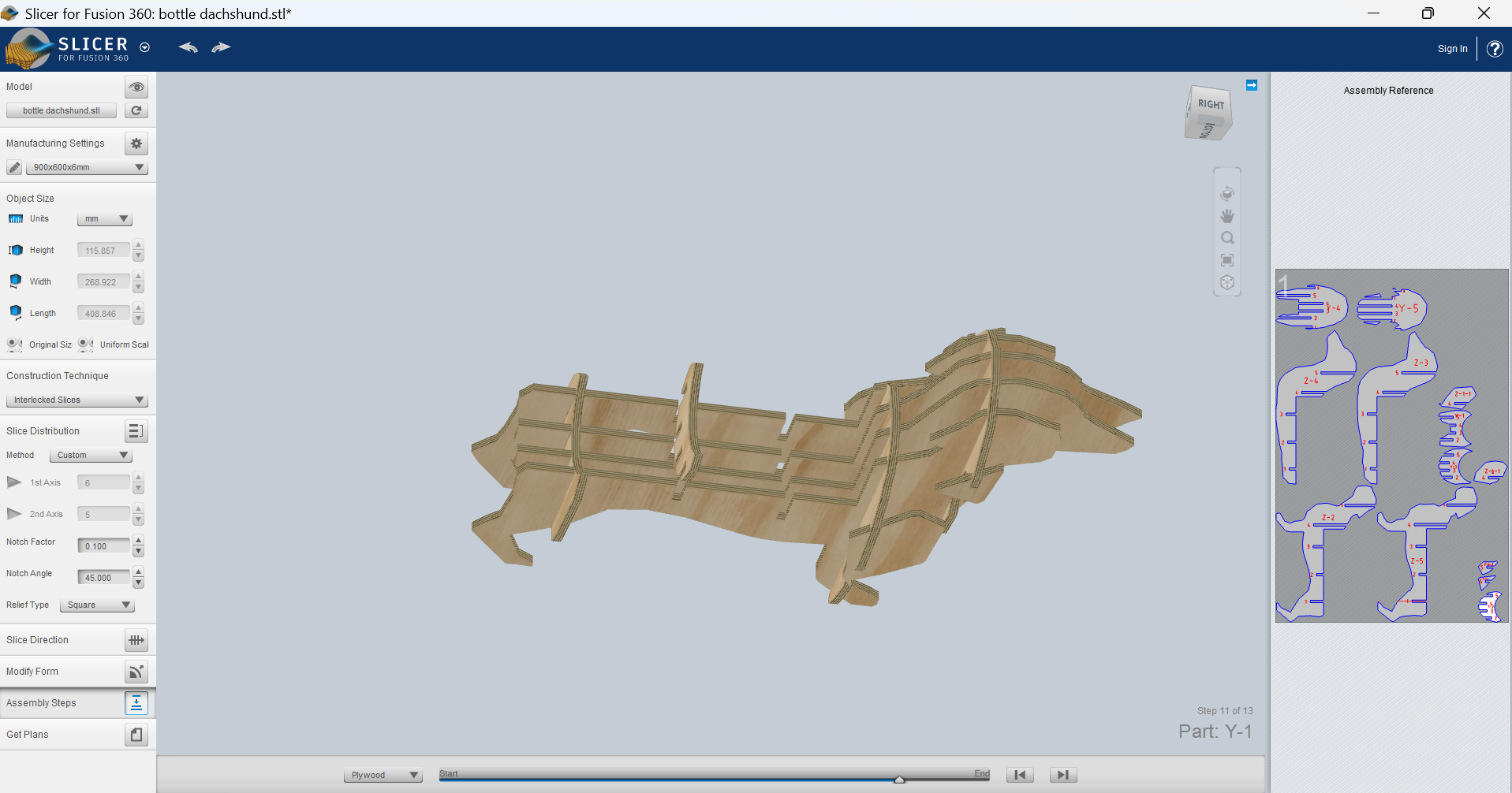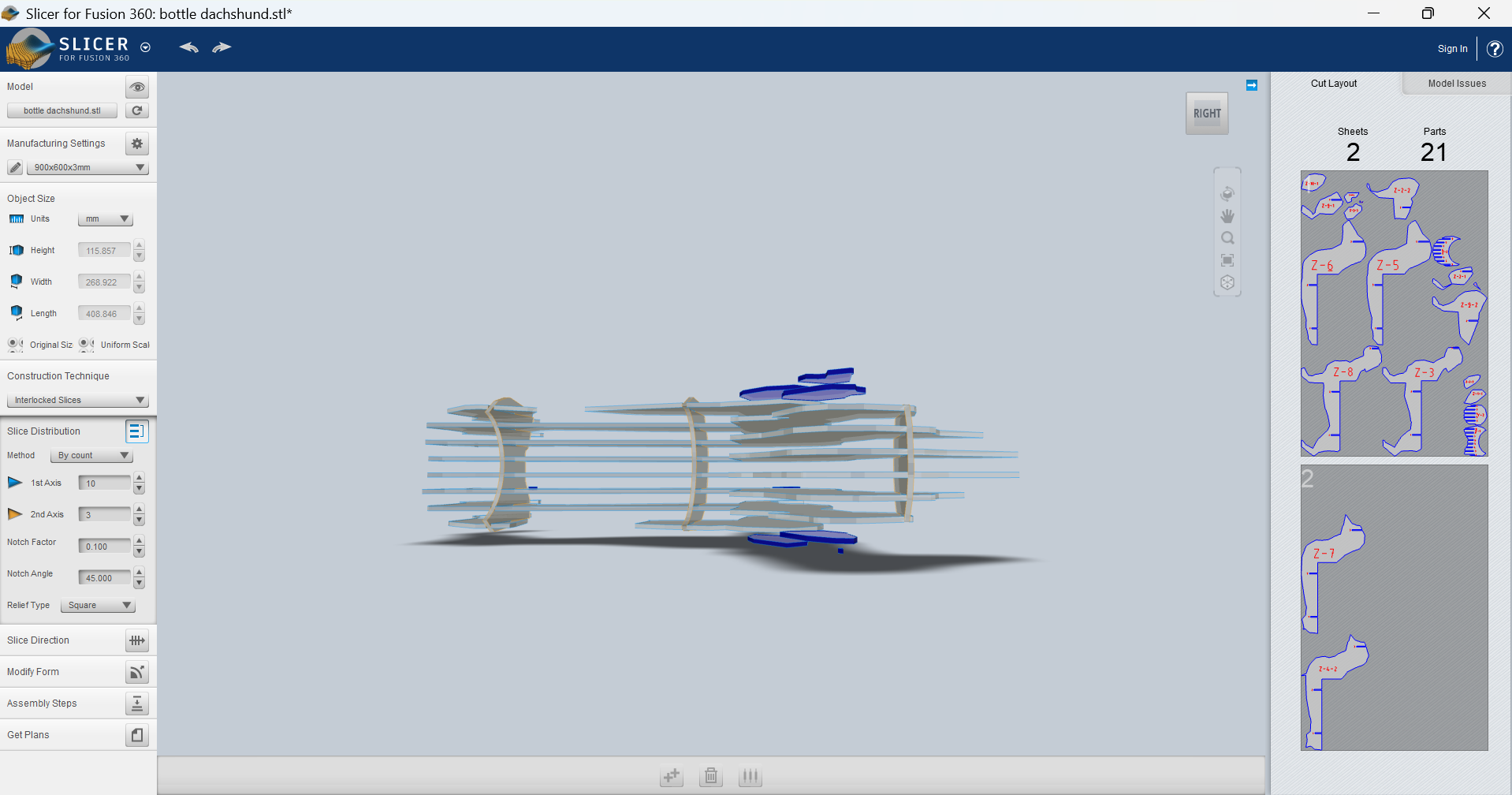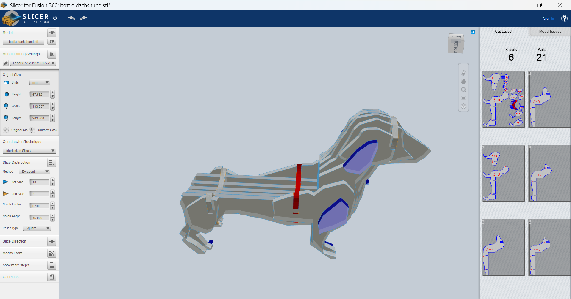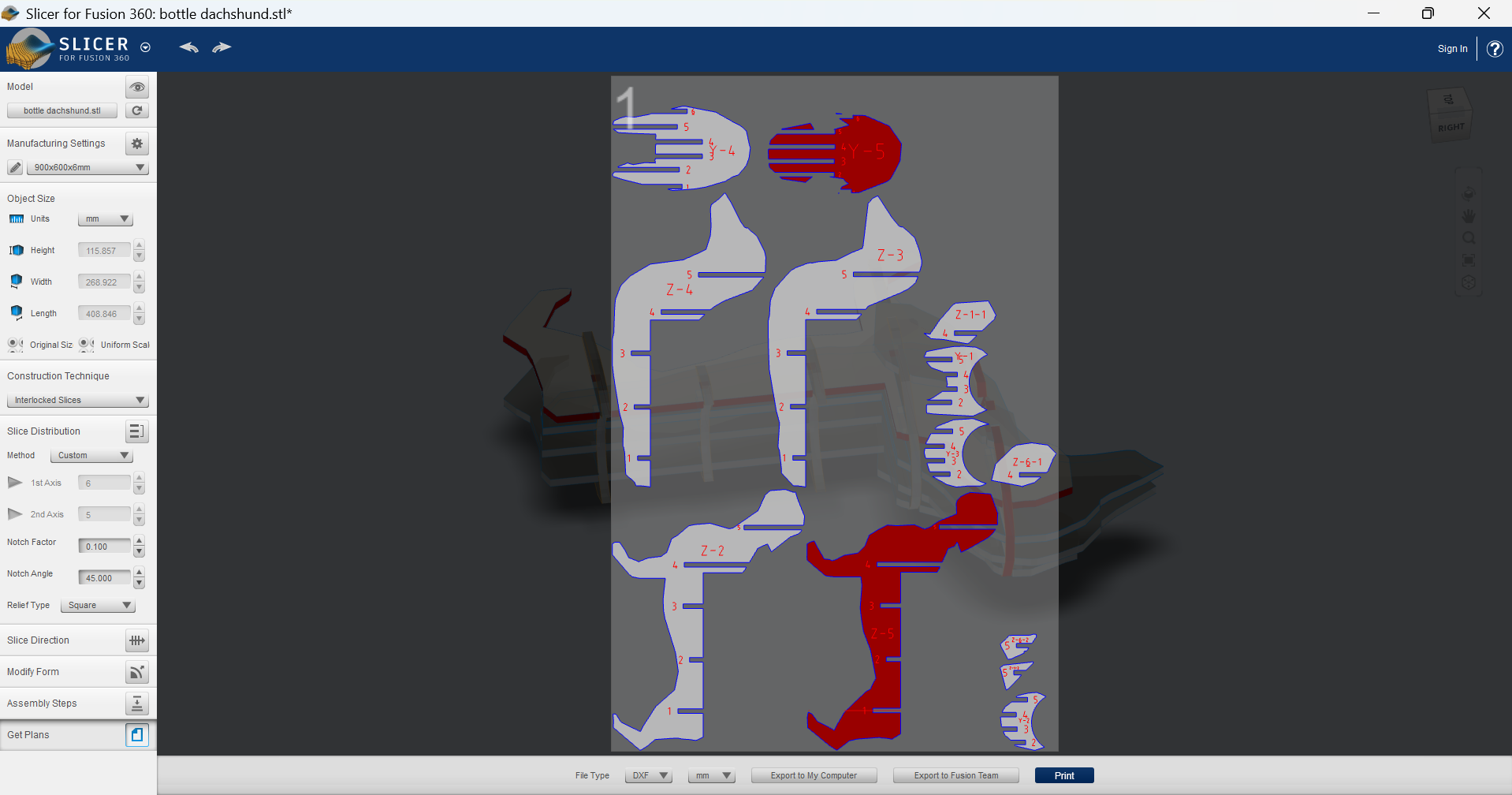 It was a little too wide first, so I made it 5% smaller and I finally got it right. With that same size I resized all the pieces and cutted everything out: