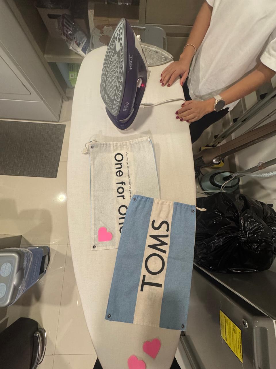Once the cut was clean, it could be ironed on the fabric. Using beaking paper or another fabric on top so the plastic doesn't stick to the iron.