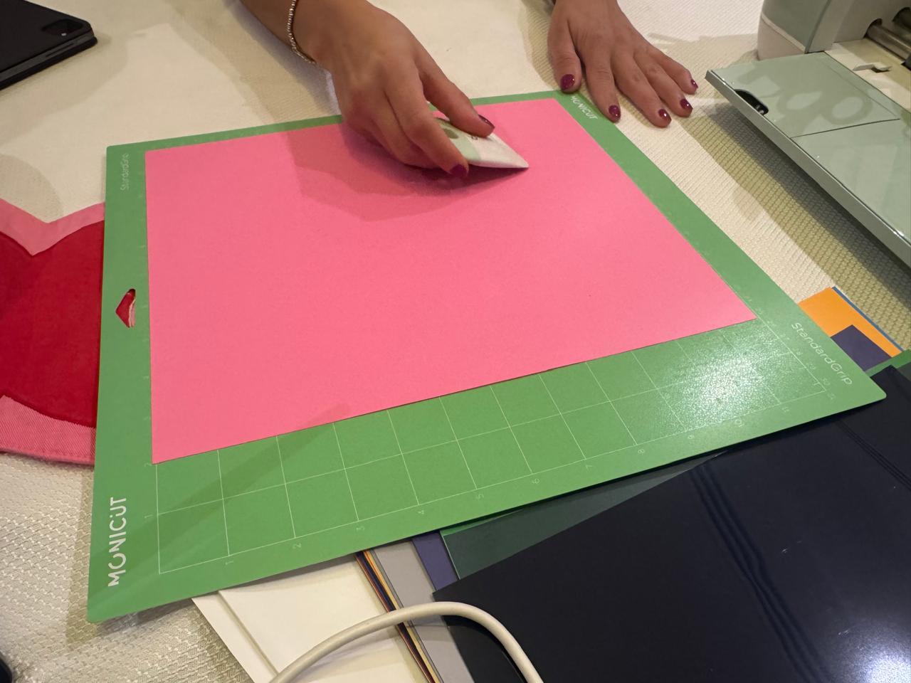 Before cutting, the vinil had to be prepared in the sticky board and inserted into the plotter.
