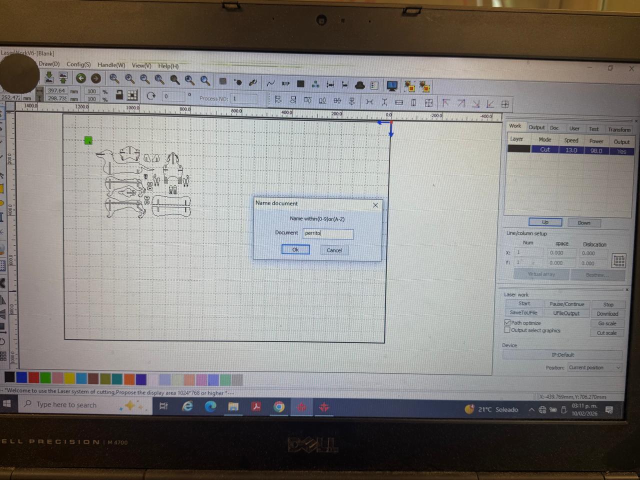 The program used to set parameters was RDWORKS. Here I was able to edith my design's size until I found the right fit.