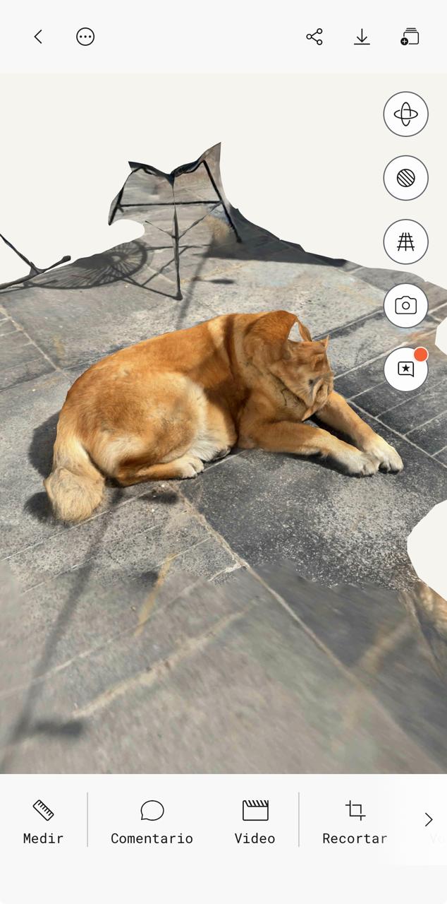 I used the app "Polycam" con my phone to try and scan my dog. I tried so many times, but I couldn't get her to stand still. This is what came out: