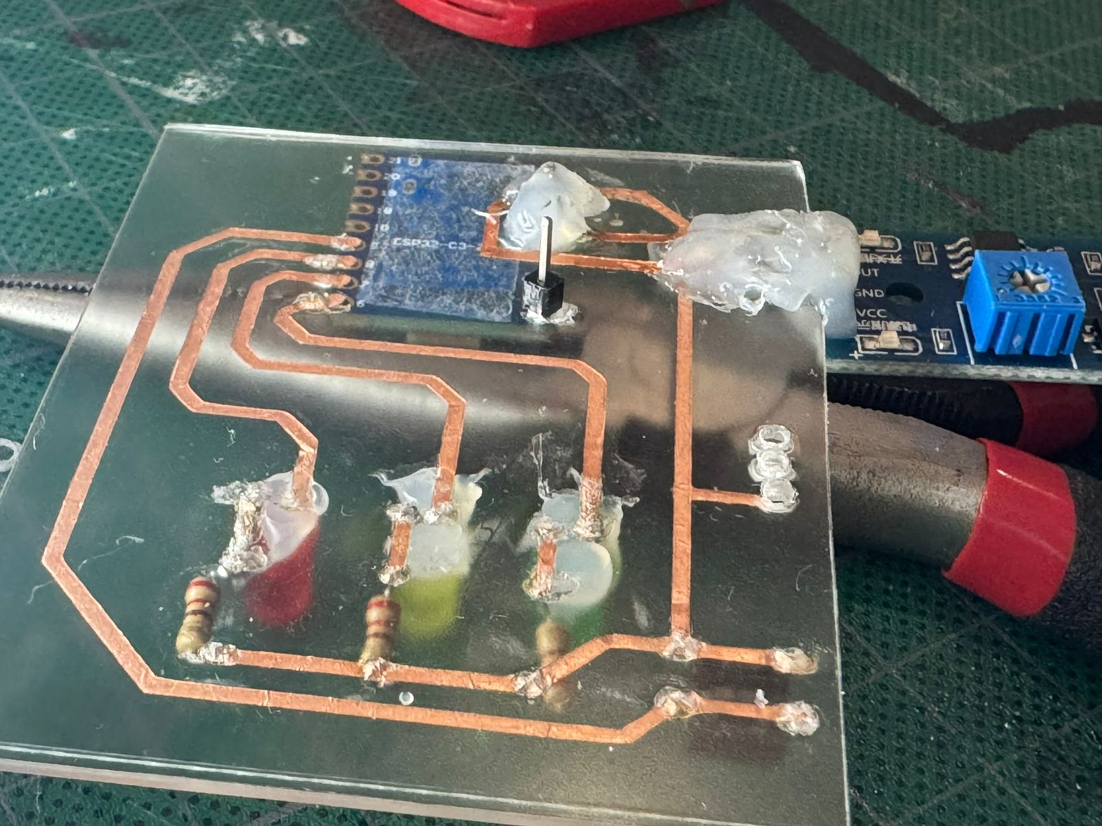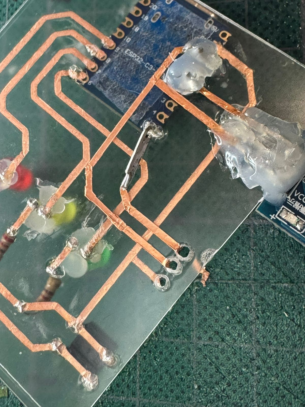 A single pin had to be added to connect the Esp32-C3-Zero to the other side of the acrilic.