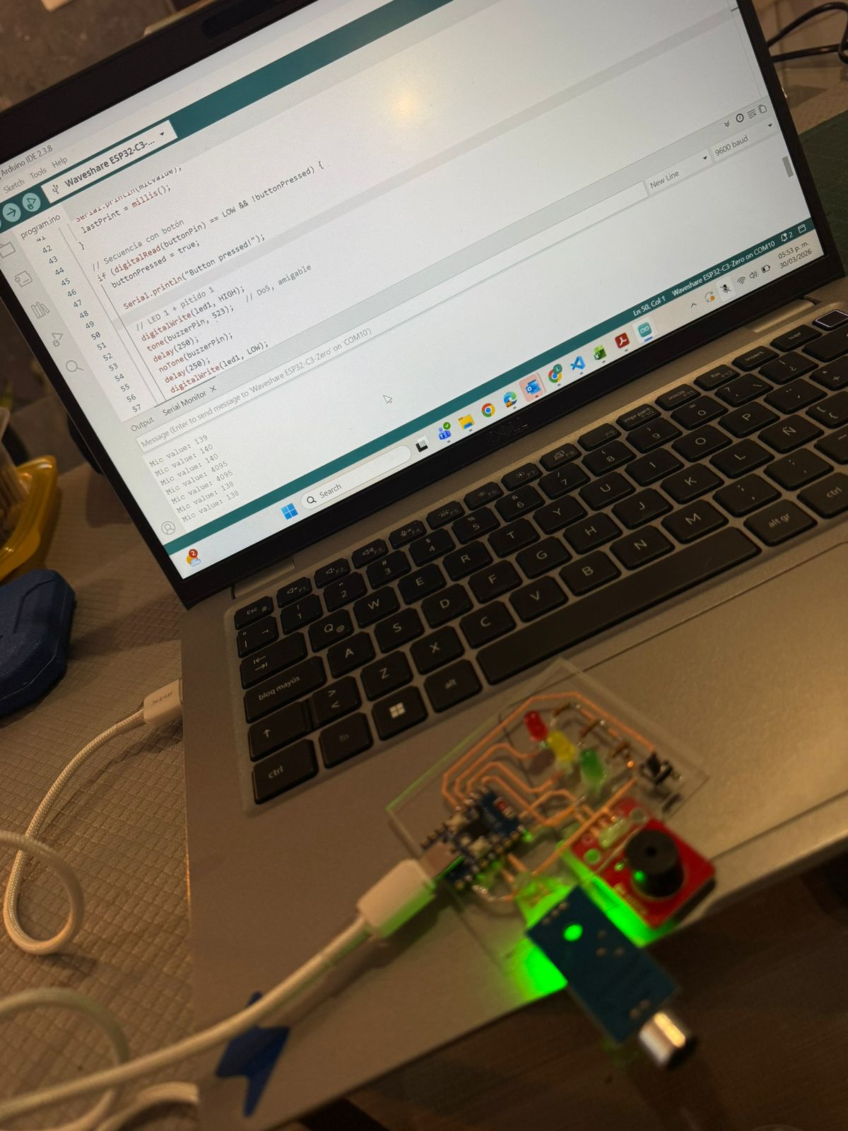 *This also helped check the micronphone was still sensing sound correctly through the Serial Monitor readings.