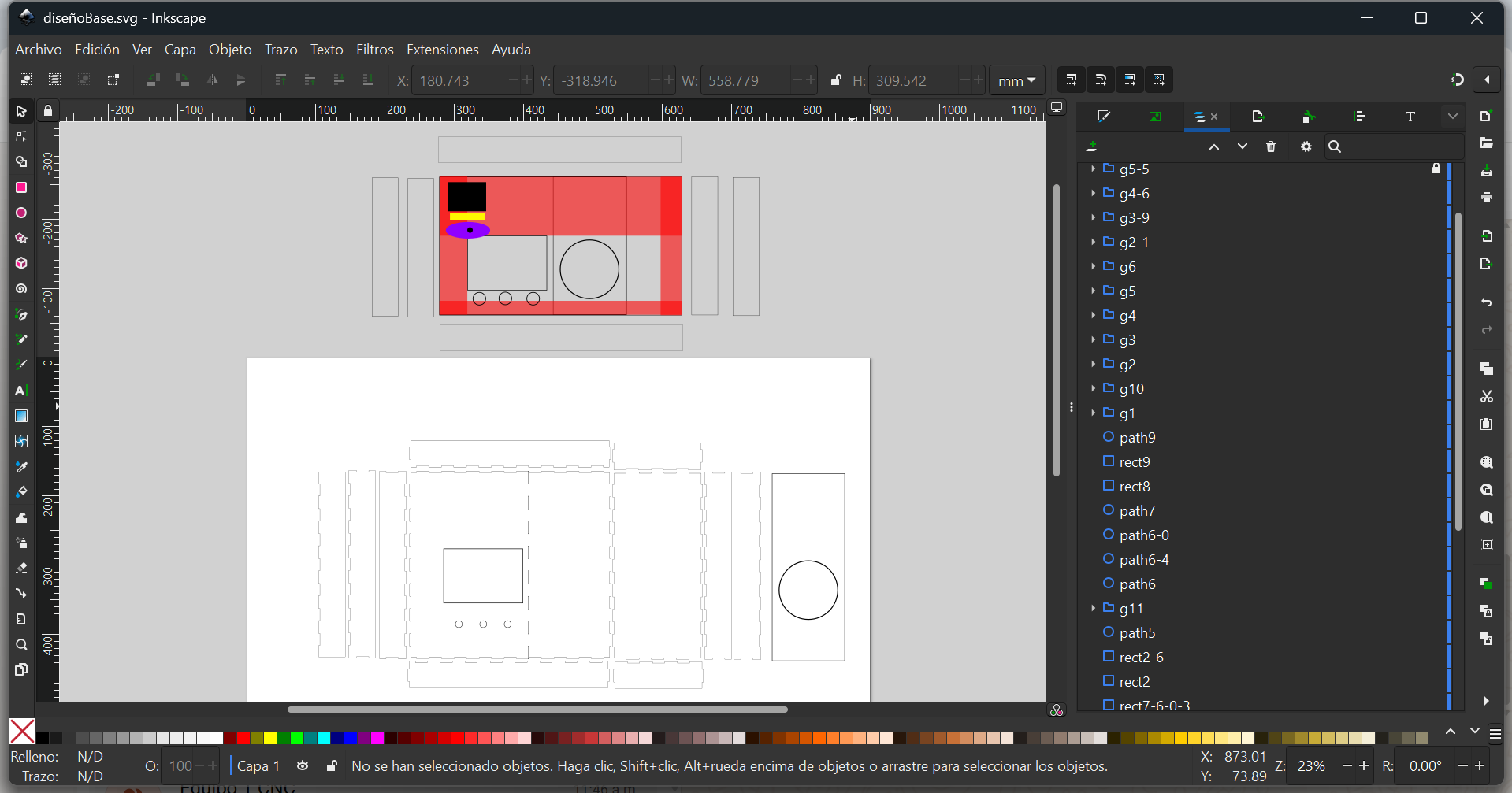 We also had to design a base for the pipette syringes, samples, agar gel canvas and trash. We planned on producing it on acrilic, but teste with MDF first: