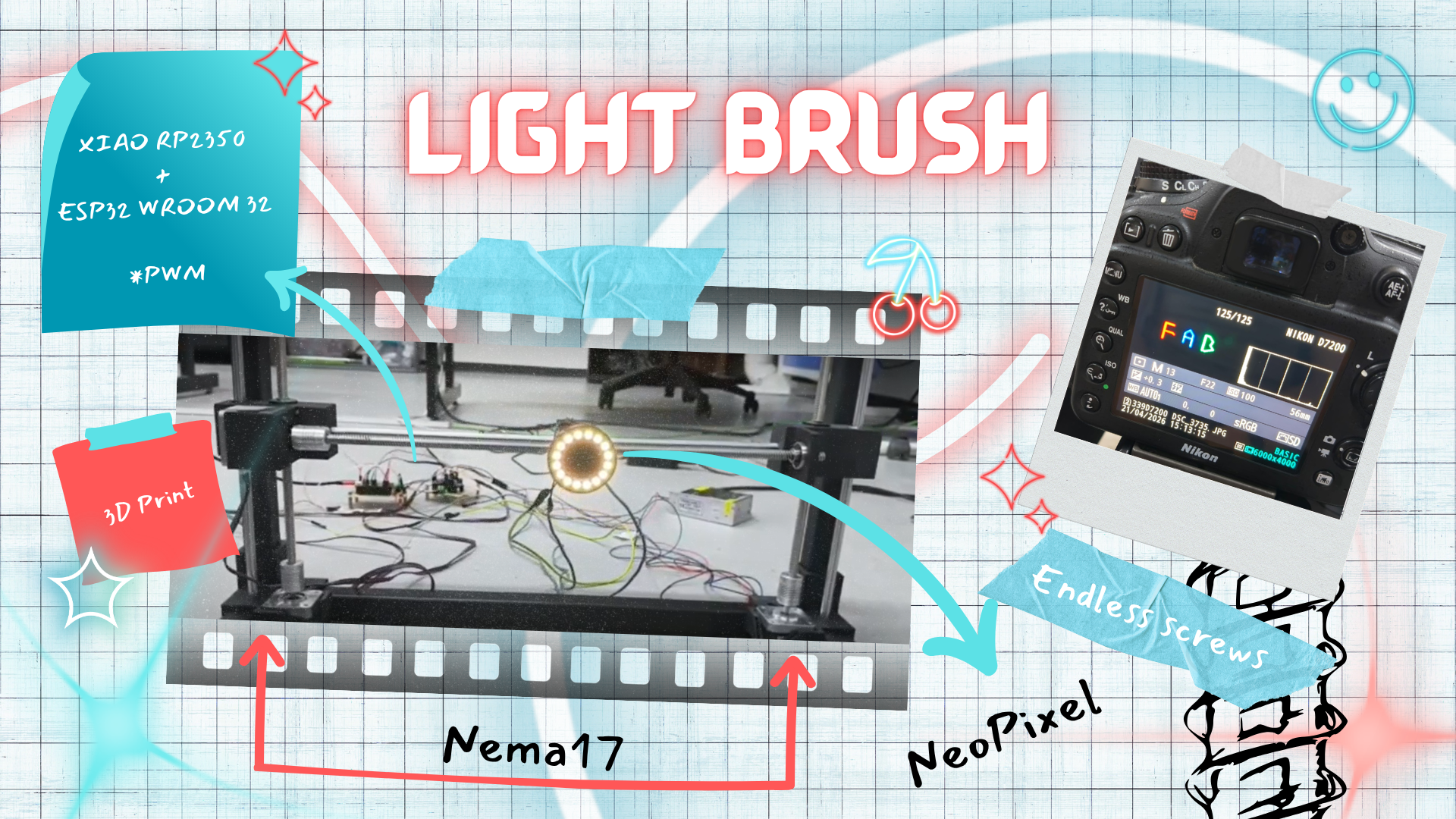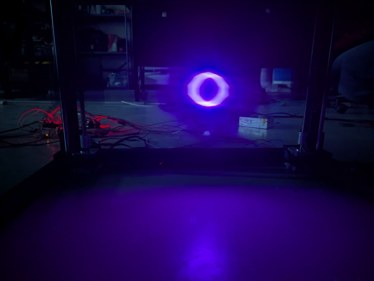Making the best of our current working X & Y axis structure to change the pipette's (z) axis so that it holds a neopixel ring that can be recorded on a black background to make automated drawings. Something like this: