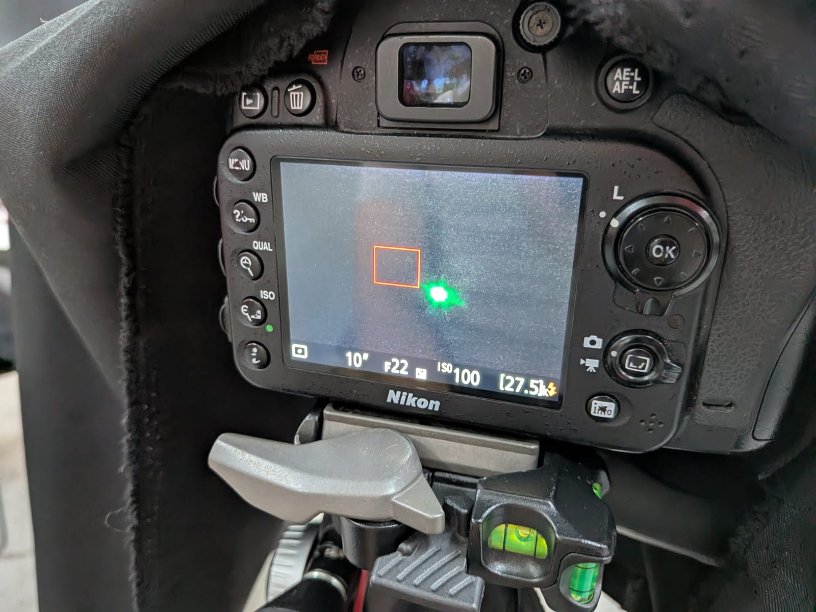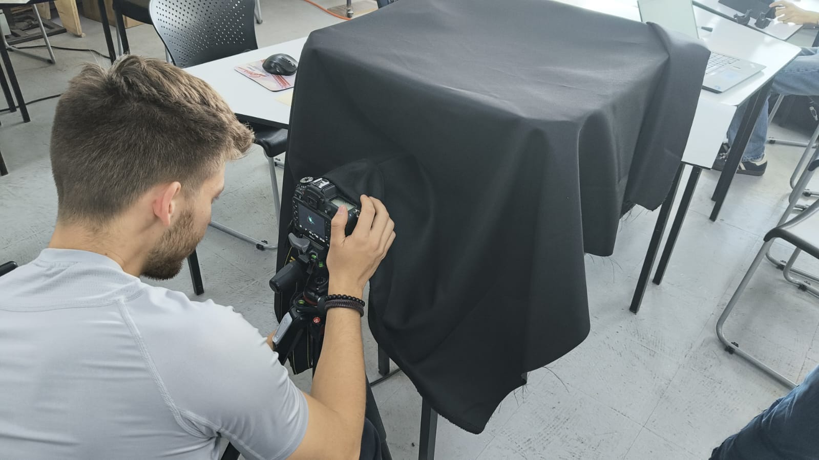 We also covered everything with a black fabric and set up our camera: