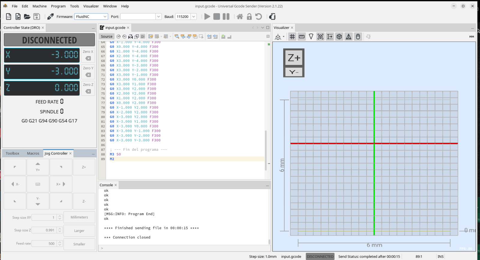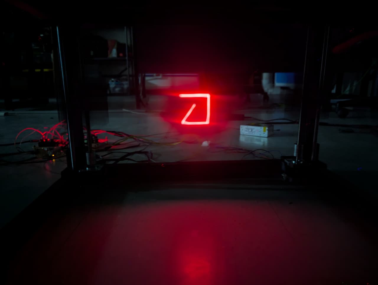 Finally, we were able to generate gcodes with This python code. and load them to the machine for it to draw with the light.