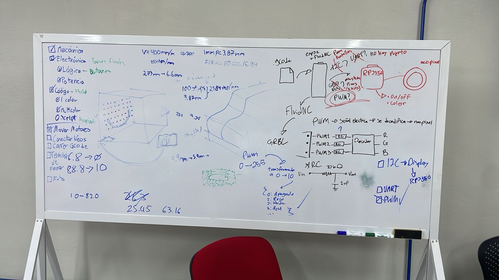 The logic used to control the neopixel was carefully planned, as we decided to use PWM communication between the XIAO and the ESP32. (After trying with I2C and not succeeding)