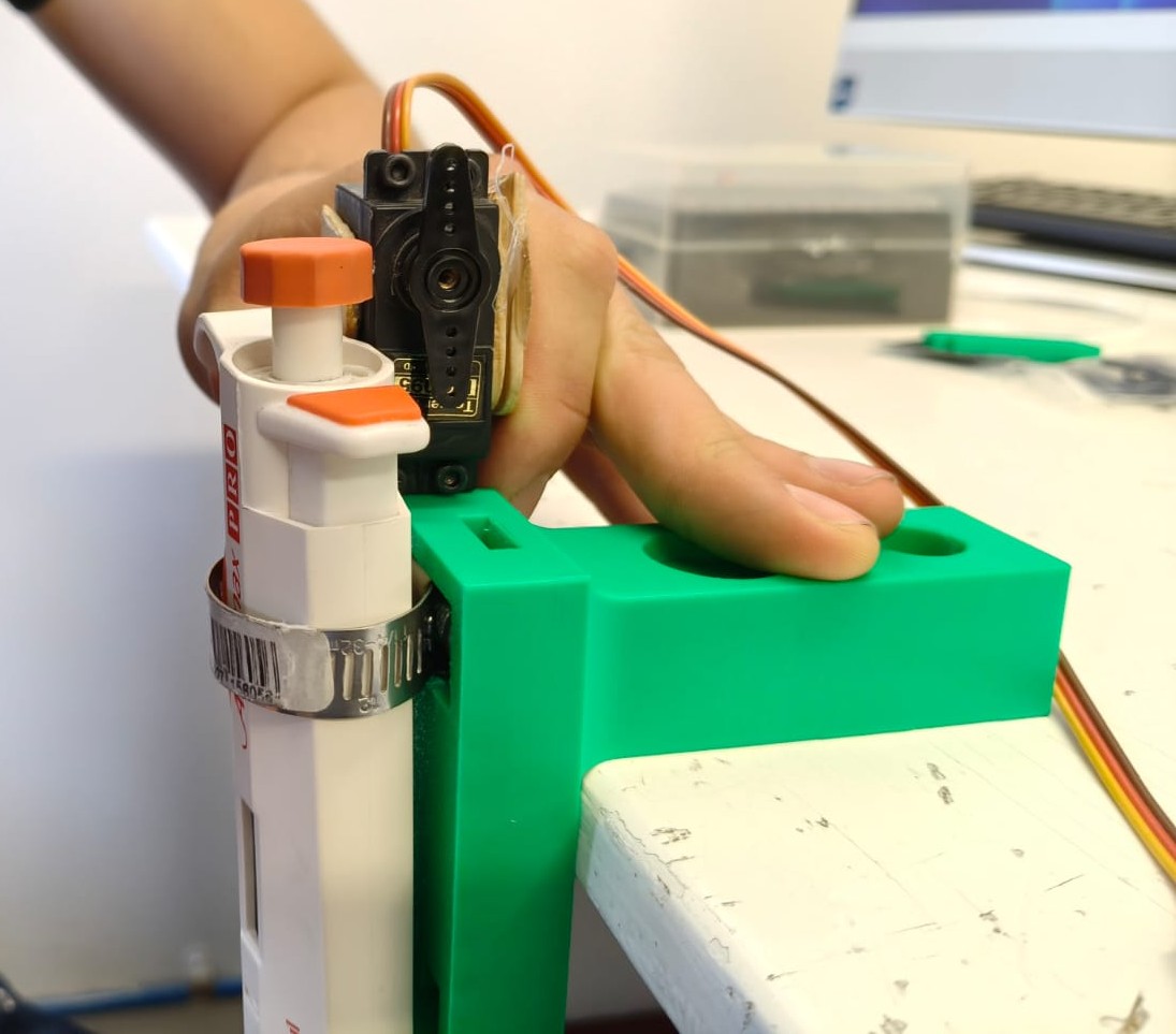 After realizing the piston actuator did not have enough strength to push the pipette's buttons, we tried and succeded with a servo motor using this code: