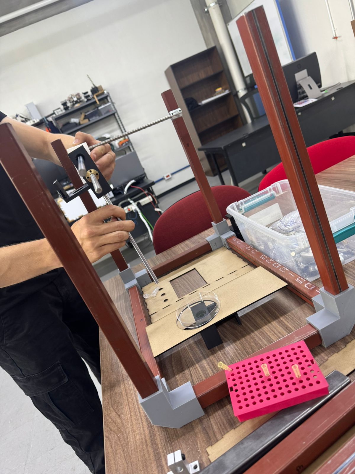 *A very important consideration for designing this base was the working area. The mechanical design and structure had to be definitive to see where the pipette would really be able to move, and therefore, where we could place the things it would interact with.