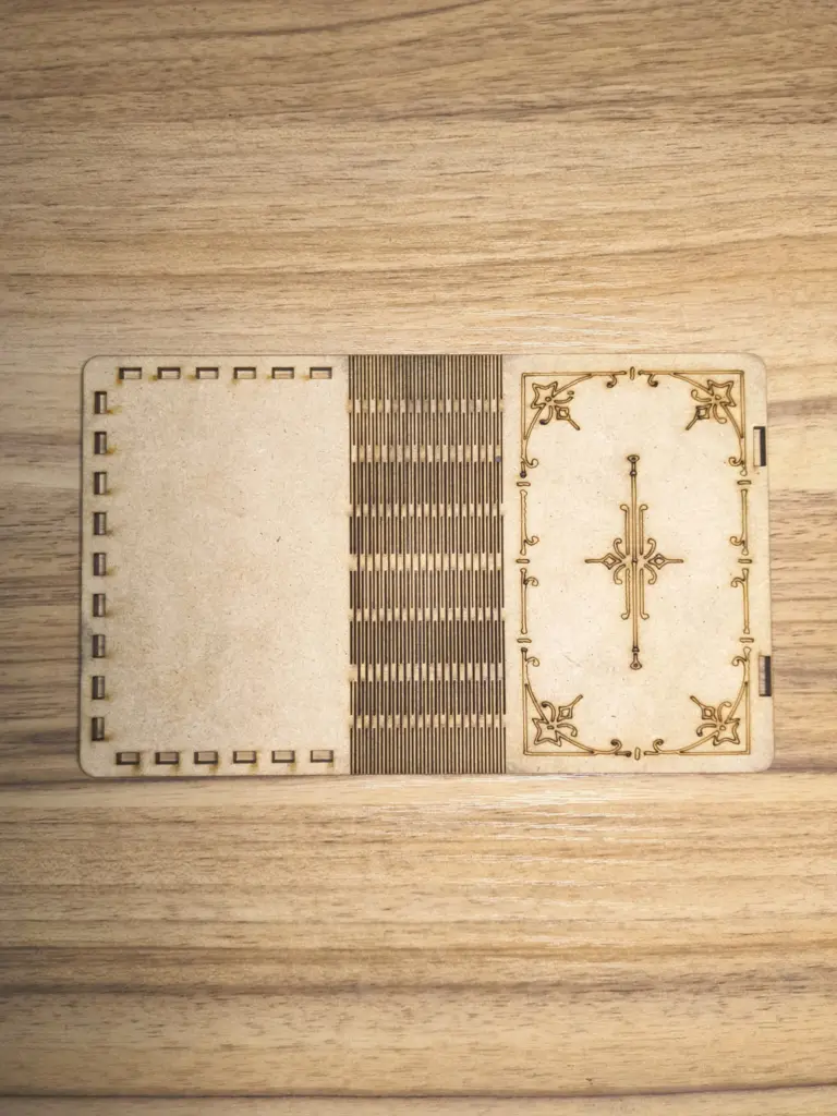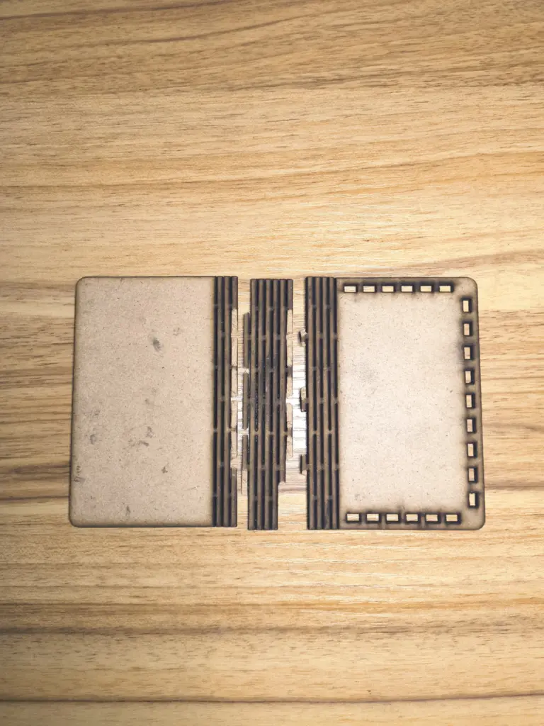 - Material thickness variation: The same parameters can have different results on different mdf qualities. For example, on the second material burn is cleaner, but the thickness is also different. So you need to adjust your original file, change the thickness variable, and export again, and do the smart cave process.