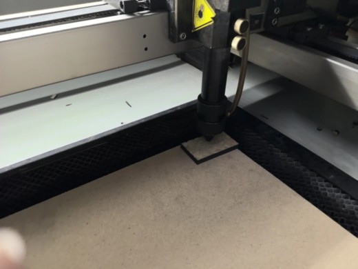 - Nozzle misalignment: your nozzle can be uncalibrated (too close or too far from the material). The ideal distances are 5mm, and for that, we have a small rectangle of mdf with that thickness.