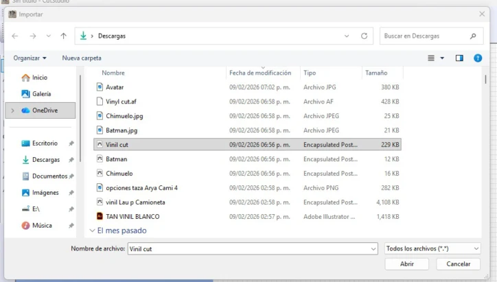 First, we need to import our file; the recommended formats are EPS (Encapsulated PostScript) or JPEG (for outline extraction).