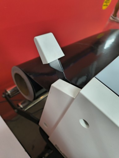 The cutter must be ready before sending the file. First turn it on and load the material. In this case we used a full vinyl roll because there were no scraps. The roll must be secured using the clampers. To secure them, pull the handle; otherwise the material may move and create cutting errors.