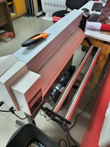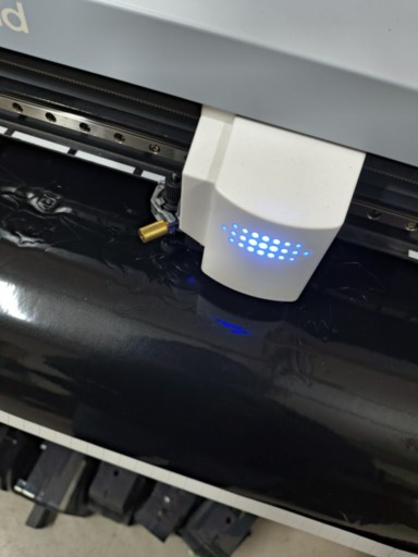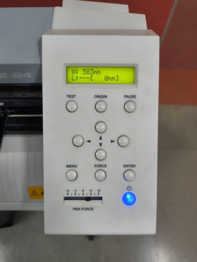 For this exercise, pen force and origins were already configured, so we didn't change them. After loading the roll, the machine was ready and the file was sent to cut. Once finished, the piece was removed using a cutter.