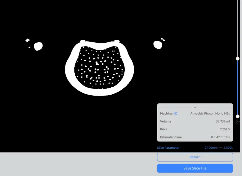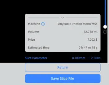 14. Check that your parameters are correct and save the slice file in a USB