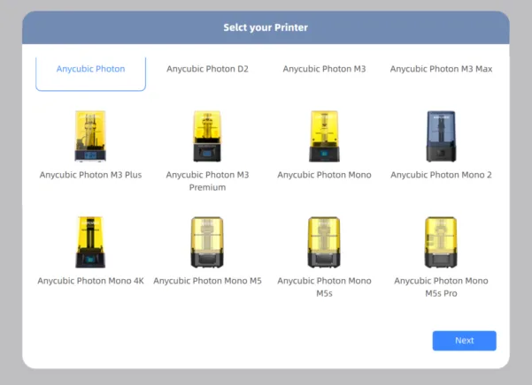2. Select your printer. In this case Anycubic Photon STL Mono MS5.
