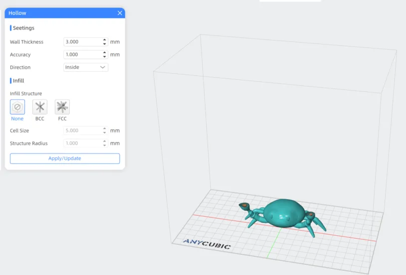 7. Hollow your piece, in this case with a 3mm wal and no infill structure.