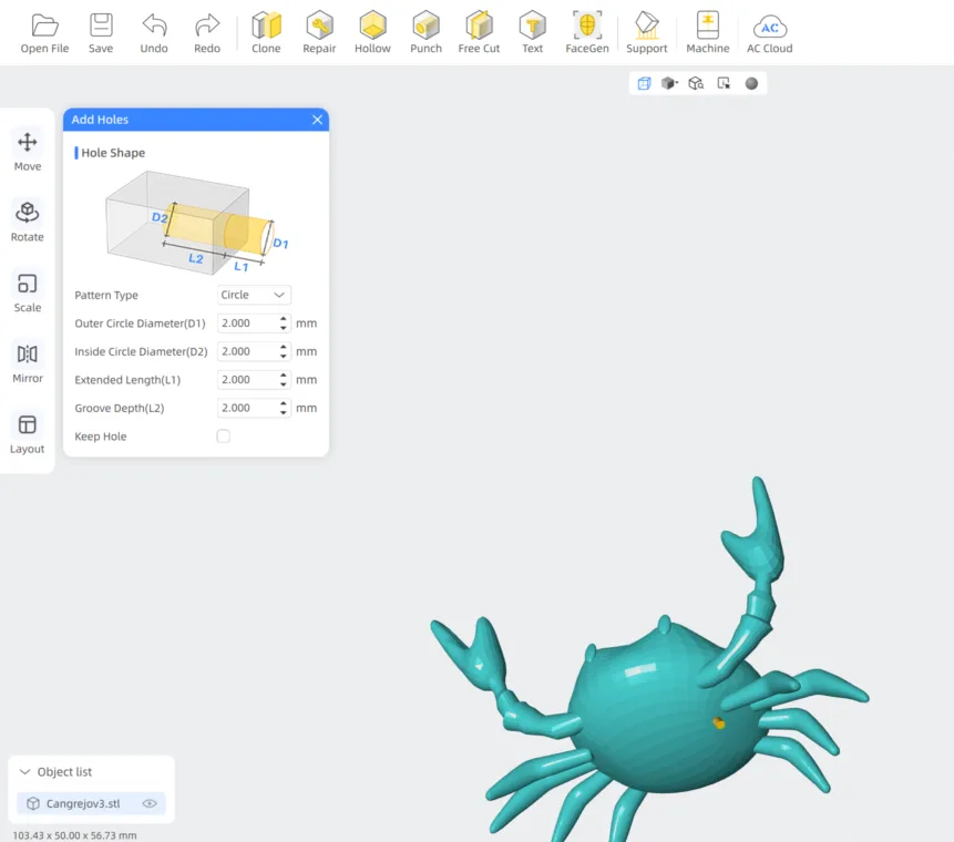 13. Then I edited it to match the crab head size. After that I exported it on STL.