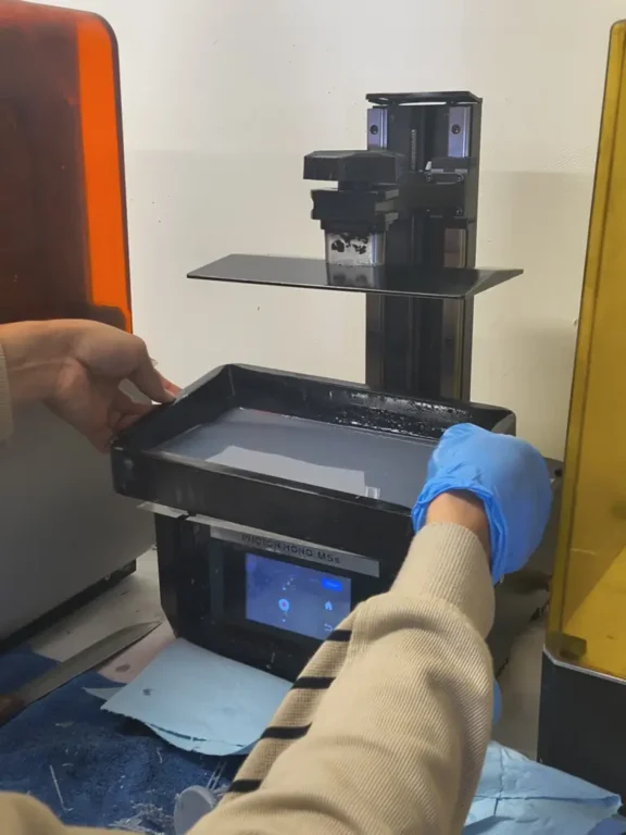 4. Then the printer will use UV light to cure liquid resin layer-by-layer