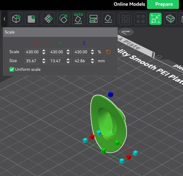 1. First I imported the hat and copied to do 2 printing test.One hat is oriented to minimize print time.