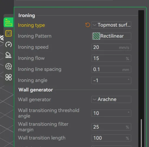 6.I also turned on ironing to have a smoother and uniform top surface.