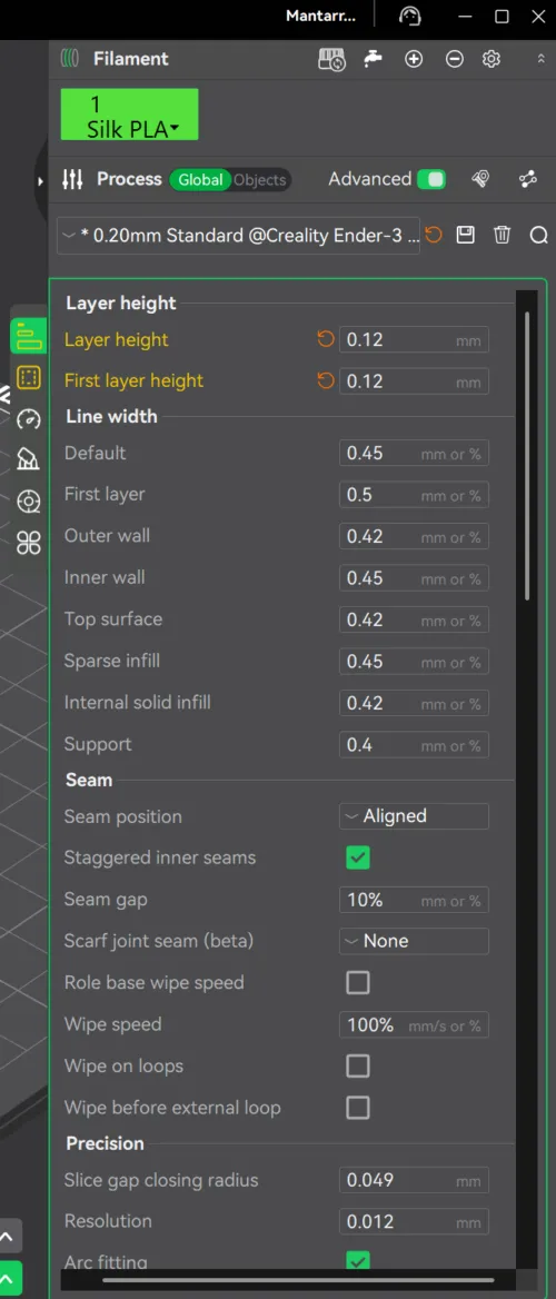 5. Then I changed the layer height to 0.12 mm to improve the overall print resolution and surface quality.