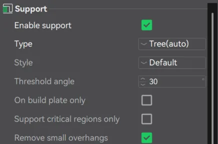 10. I also enabled supports because it has an overhang in the tail. I selected the tree supports because they minimize contact with the model, reducing surface marks on visible areas.