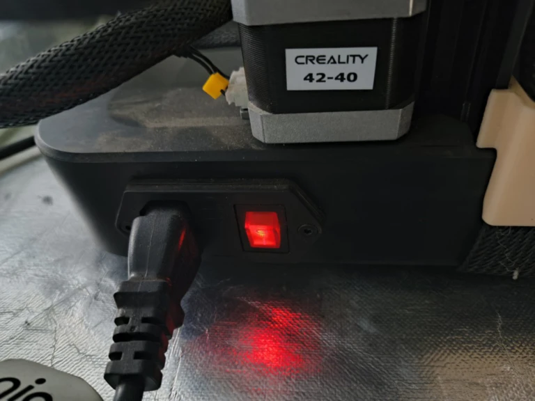 1. Turn on the 3D printer, the switch is located at the left side.