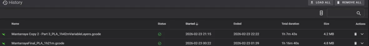 Also the actual printing time was smaller to the slicer and to the first test. It took 1h 7min to printing time.