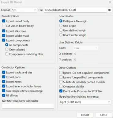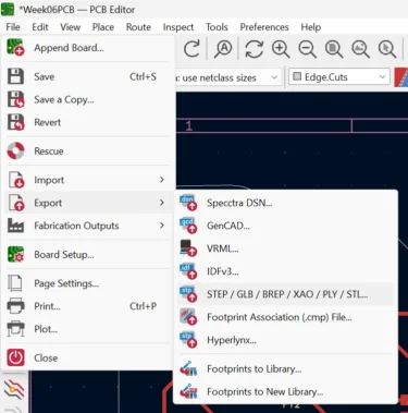 3. If you want to make a case return to the PCB editor and click export as step or stl