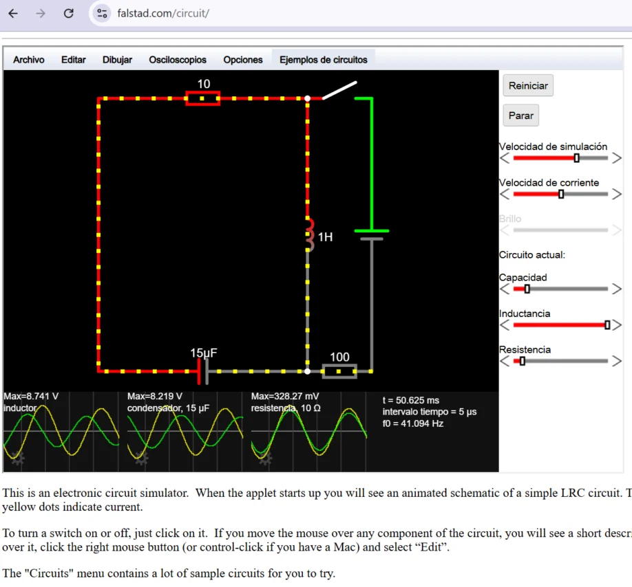 Falstad is a browser-based electronic circuit simulator. I chose to use it because it helped me understand voltage and current, by showing the "real" current flow, as well as circuit examples.