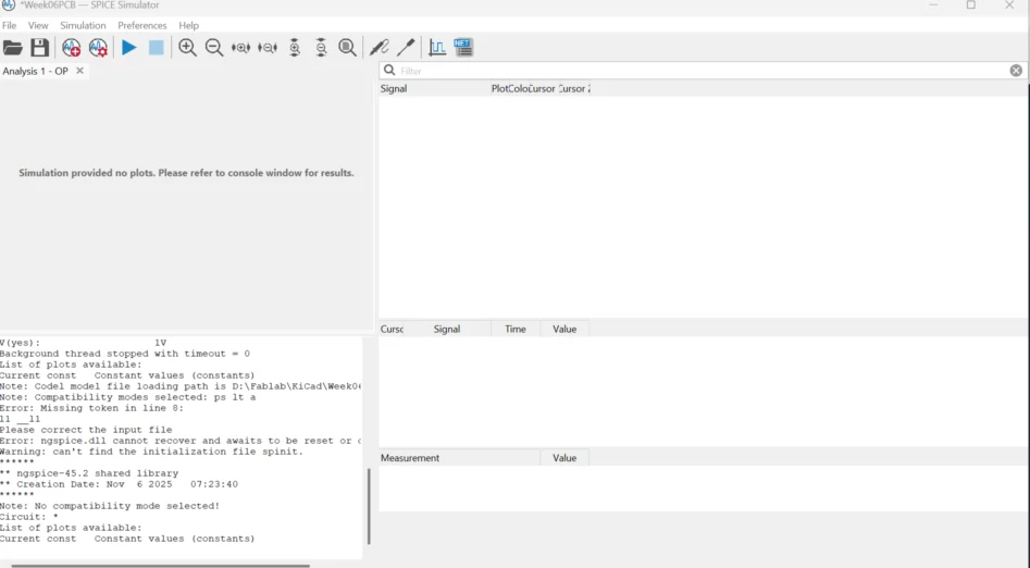 You can also simulate on Ki Cad, although I found it less intuitive.Here is how te simulator window looks (there is no simulation here just the interface).